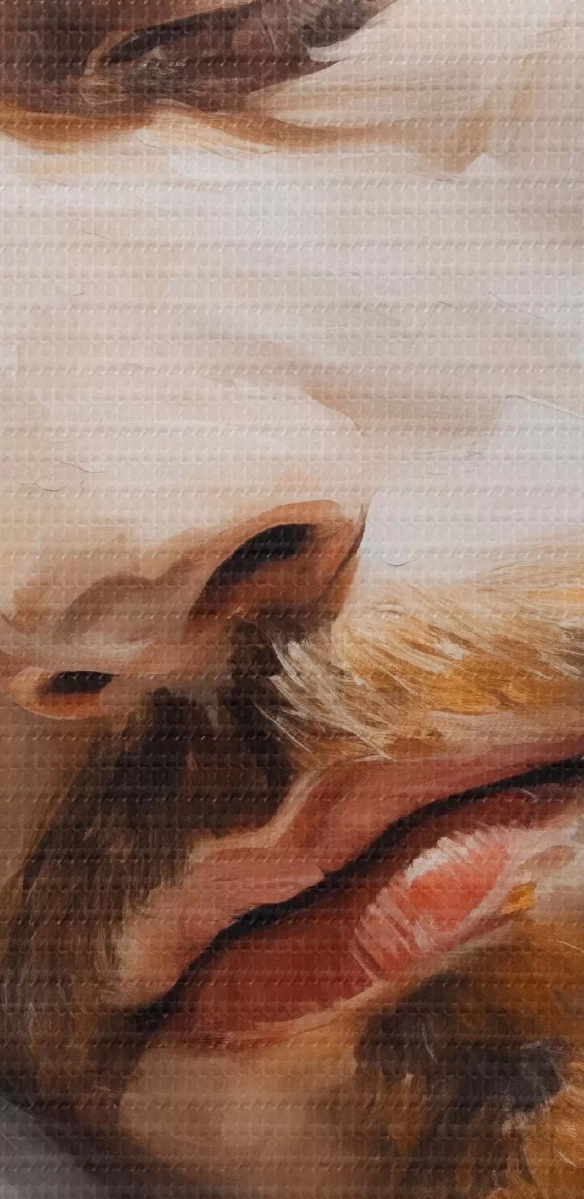 Selle lõuendi peenike niidipunus meenutab professionaalse kunstniku lõuendi pinda.