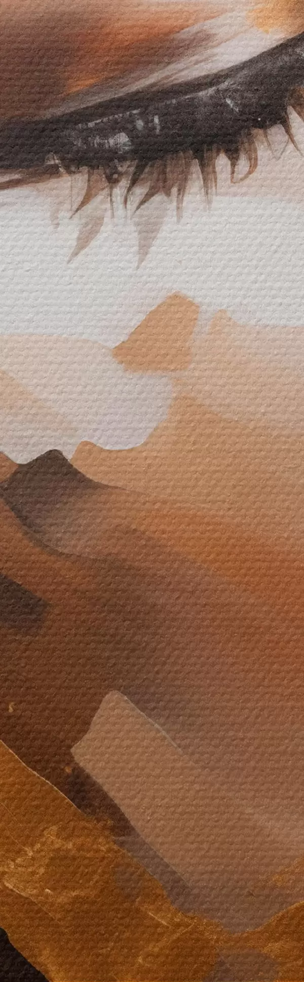 Maalid Pehme näoilmega naise abstraktne portree, mis on esitatud soojades toonides ja dünaamiliste pintslitõmmetega, mis lisavad sügavust ja emotsiooni. Nr s42627