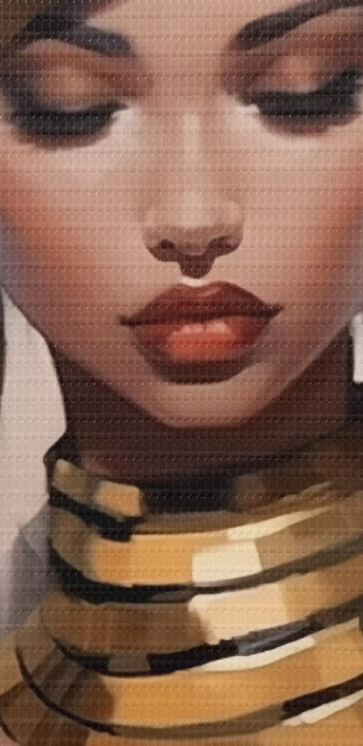 Selle lõuendi peenike niidipunus meenutab professionaalse kunstniku lõuendi pinda.