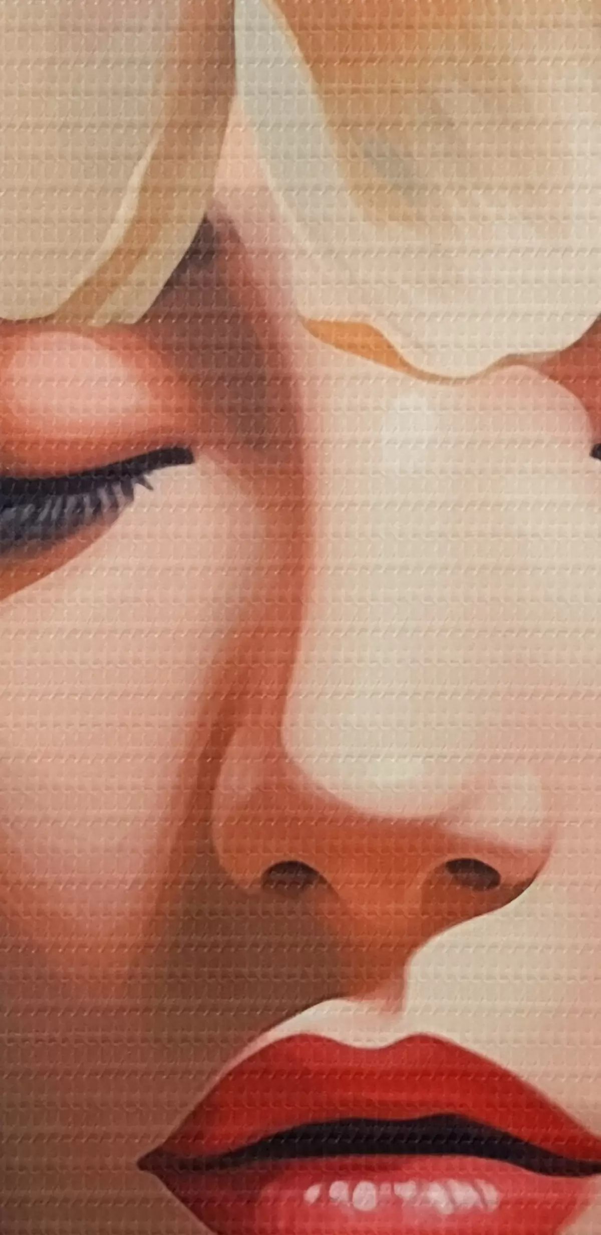Selle lõuendi peenike niidipunus meenutab professionaalse kunstniku lõuendi pinda.
