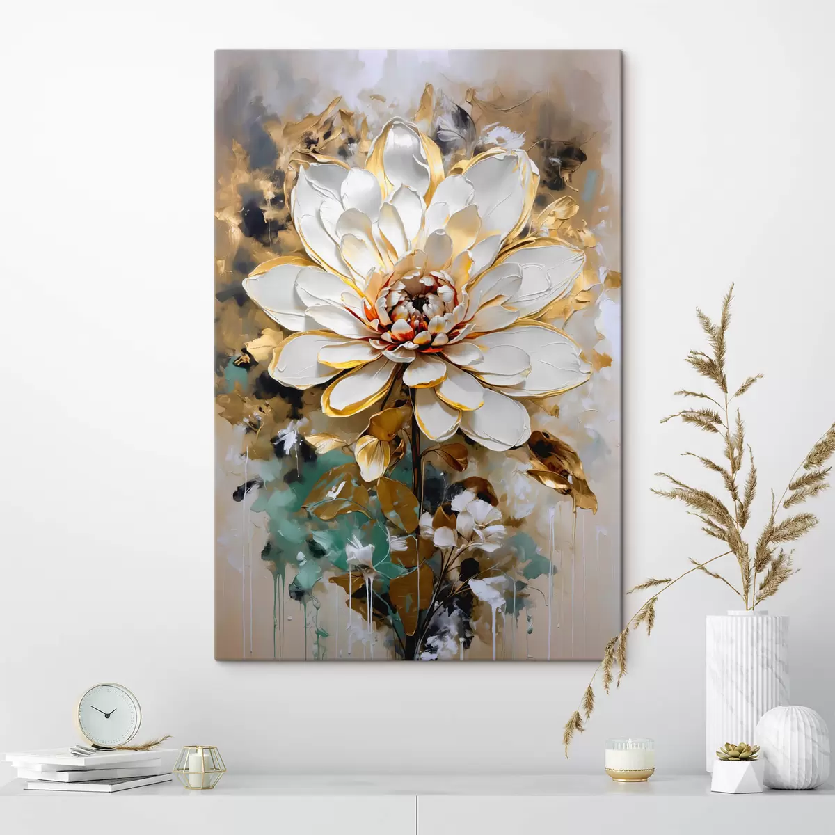 Maalid Abstraktne lill, mille taustal on värvi imitatsiooni pritsmed Nr s42707