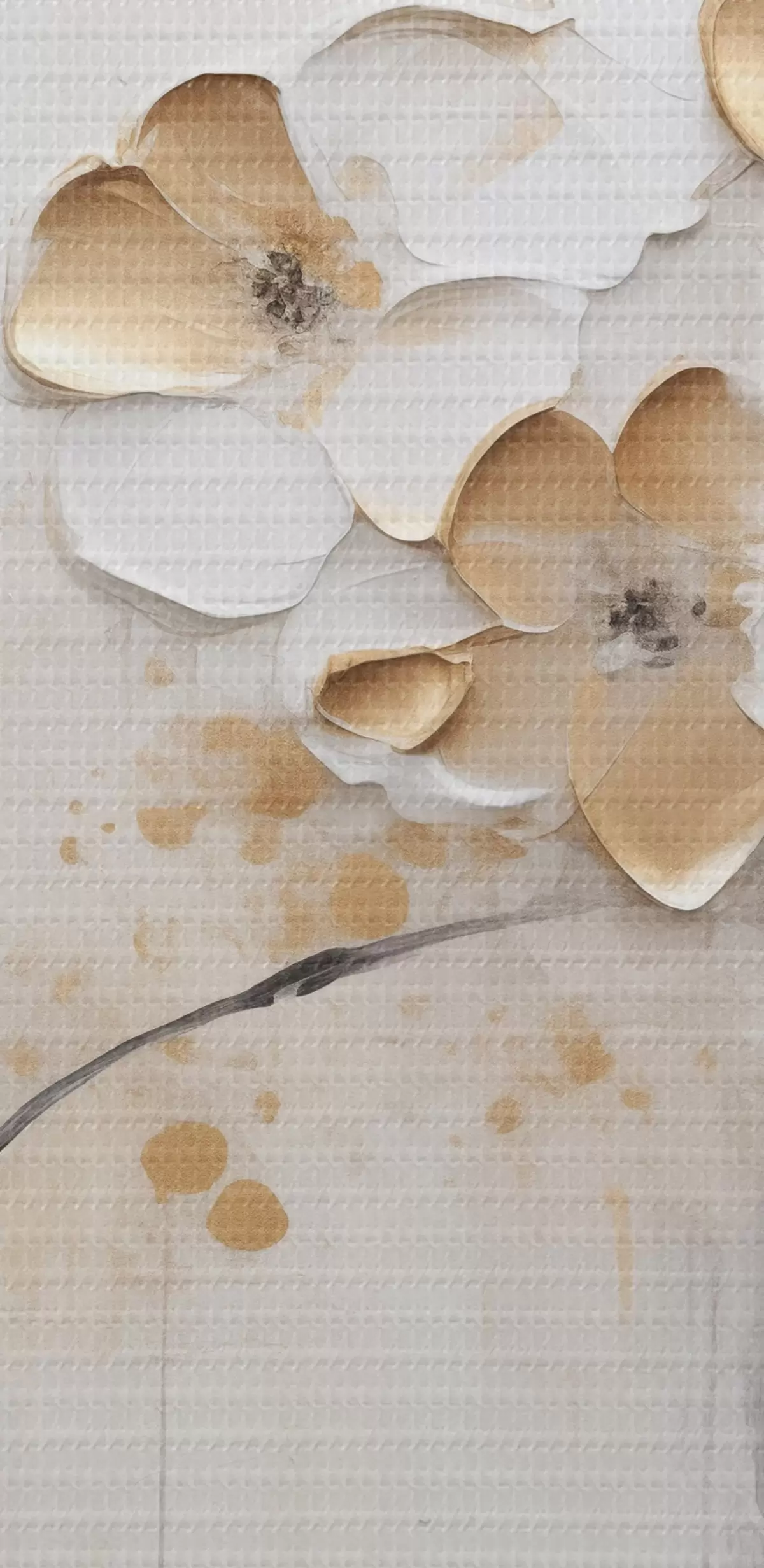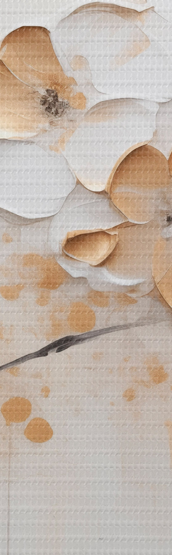Maalid Tekstuursete kroonlehtedega lilled pehmel, summutatud taustal koos abstraktsete värvilaikude ja vertikaalsete joontega Nr s42713