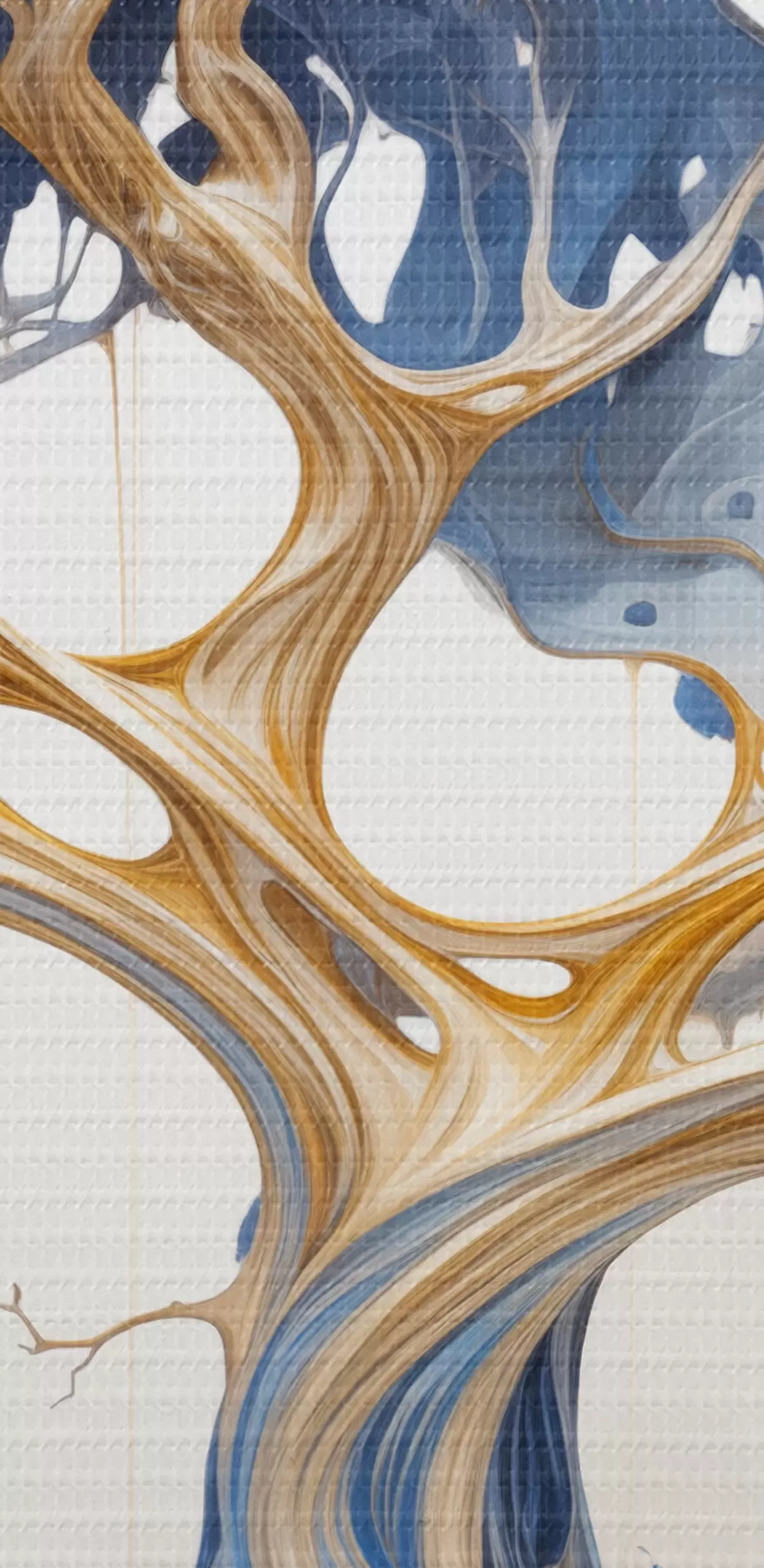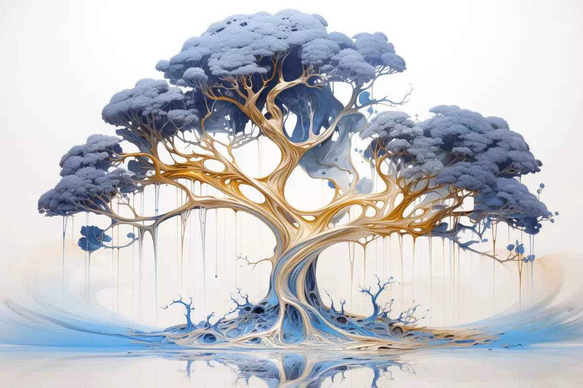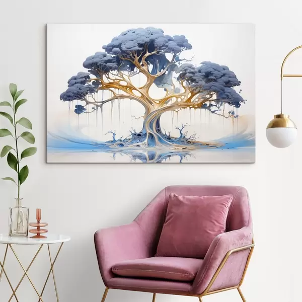 Maalid Stiliseeritud puu keeruliste okste ja lehtedega, millel on siniste ja kollaste toonide segu Nr s42722