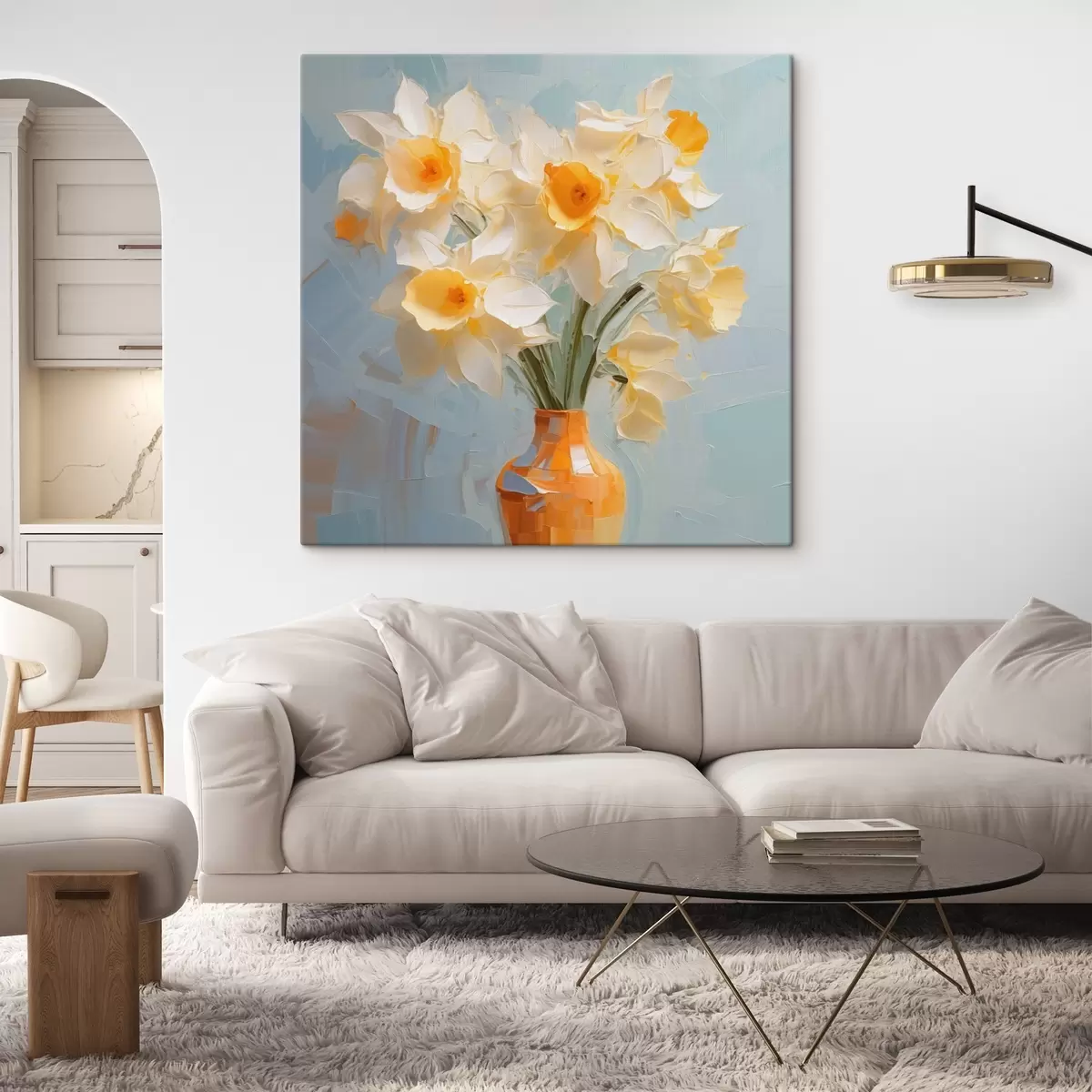Maalid Narsirooside kimp vaasis, mis imiteerib maali Nr s42749
