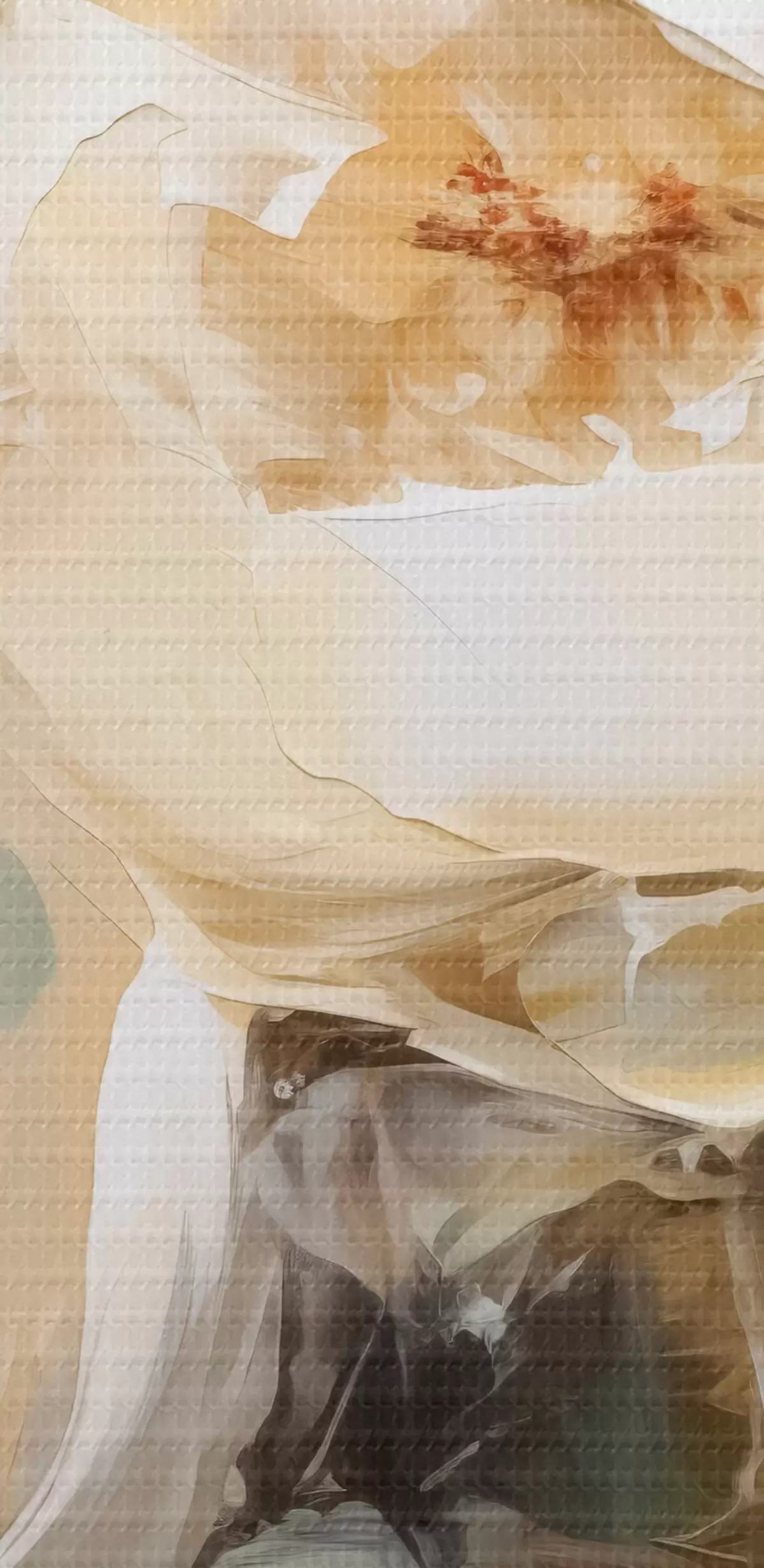 Selle lõuendi peenike niidipunus meenutab professionaalse kunstniku lõuendi pinda.