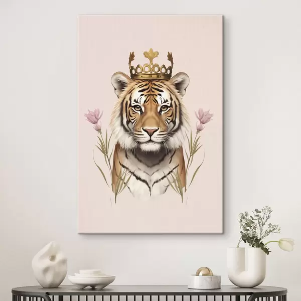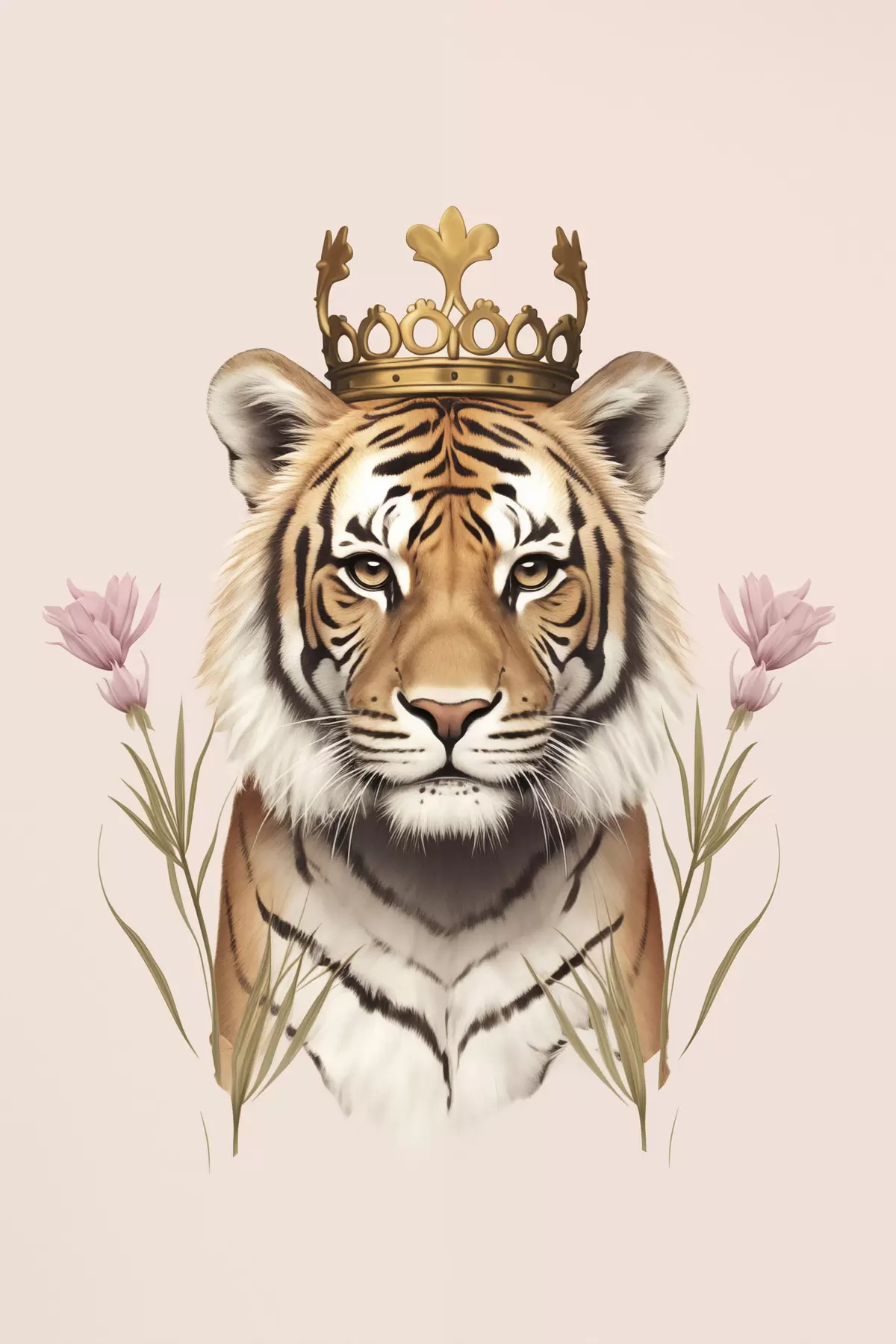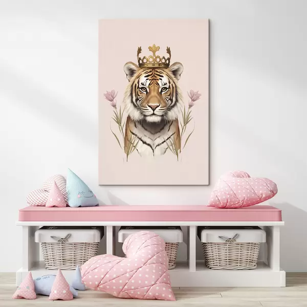 Maalid Krooniga tiiger, roosa taust, tulbid Nr s42782