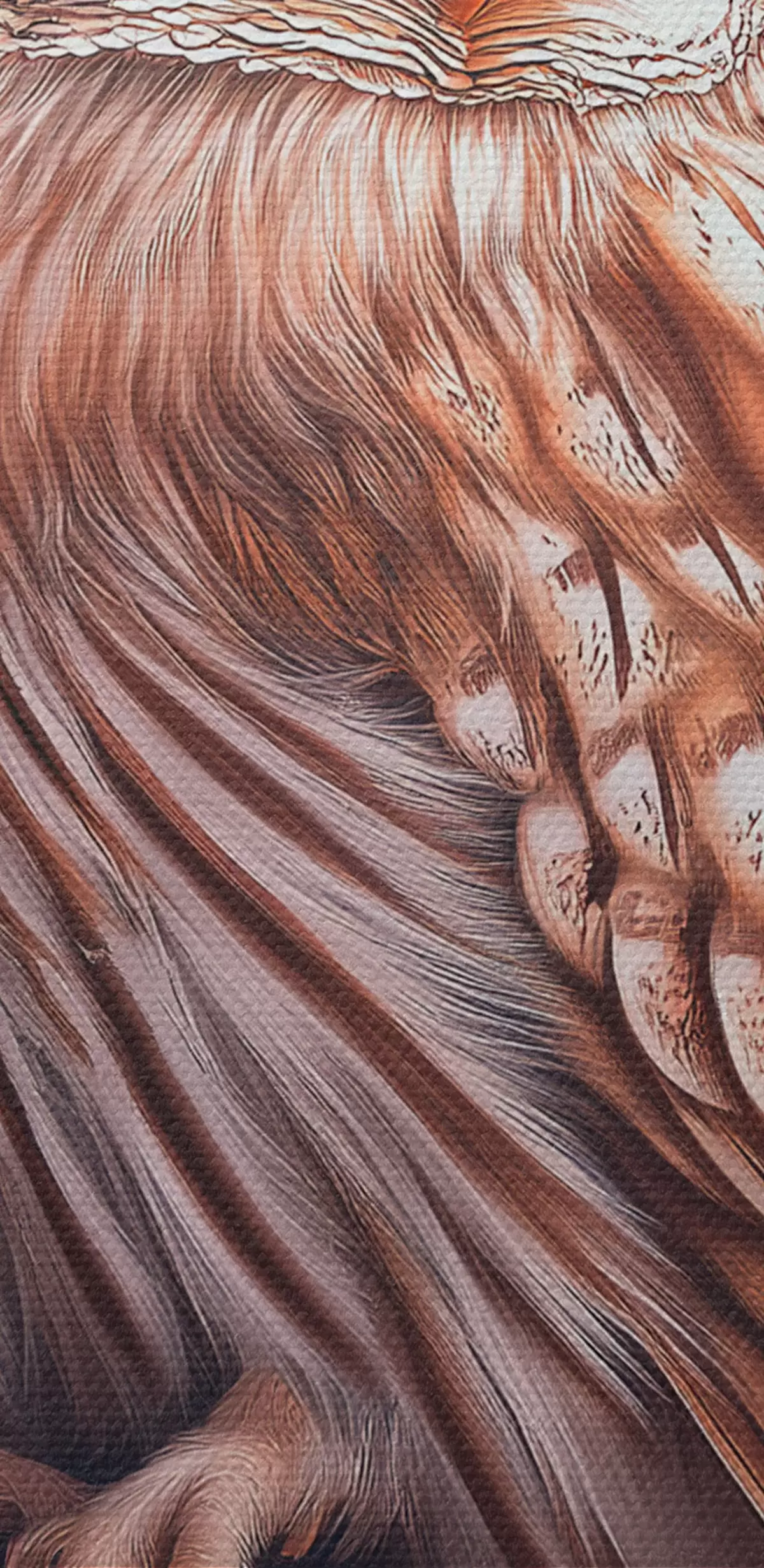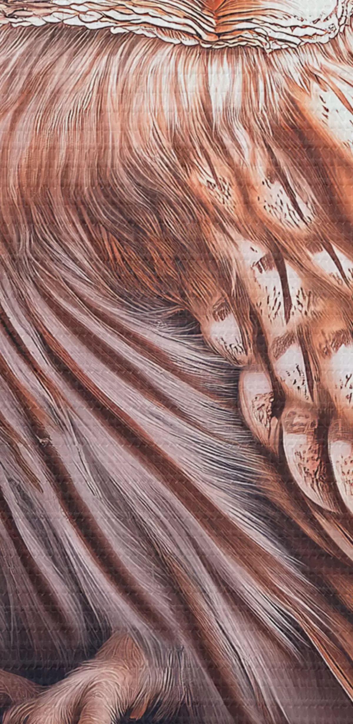 Selle lõuendi peenike niidipunus meenutab professionaalse kunstniku lõuendi pinda.