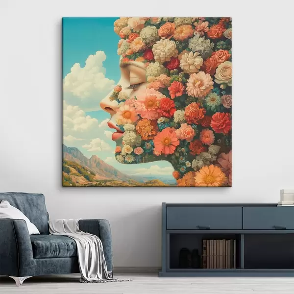 Maalid Nägu profiilis lilledega Nr s42861