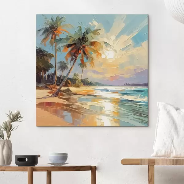 Maalid Palmipuud mere ääres imitatsiooni maalimine Nr s42897
