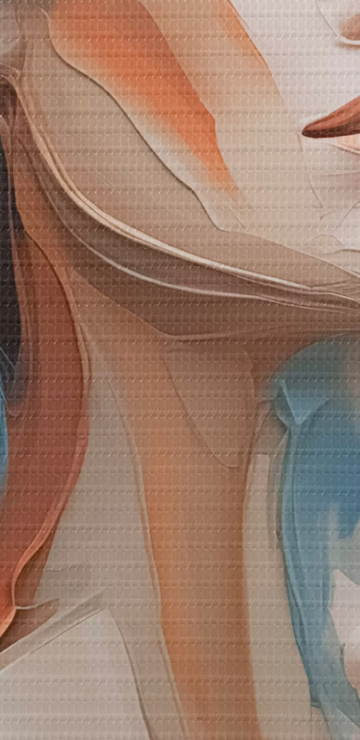 Selle lõuendi peenike niidipunus meenutab professionaalse kunstniku lõuendi pinda.