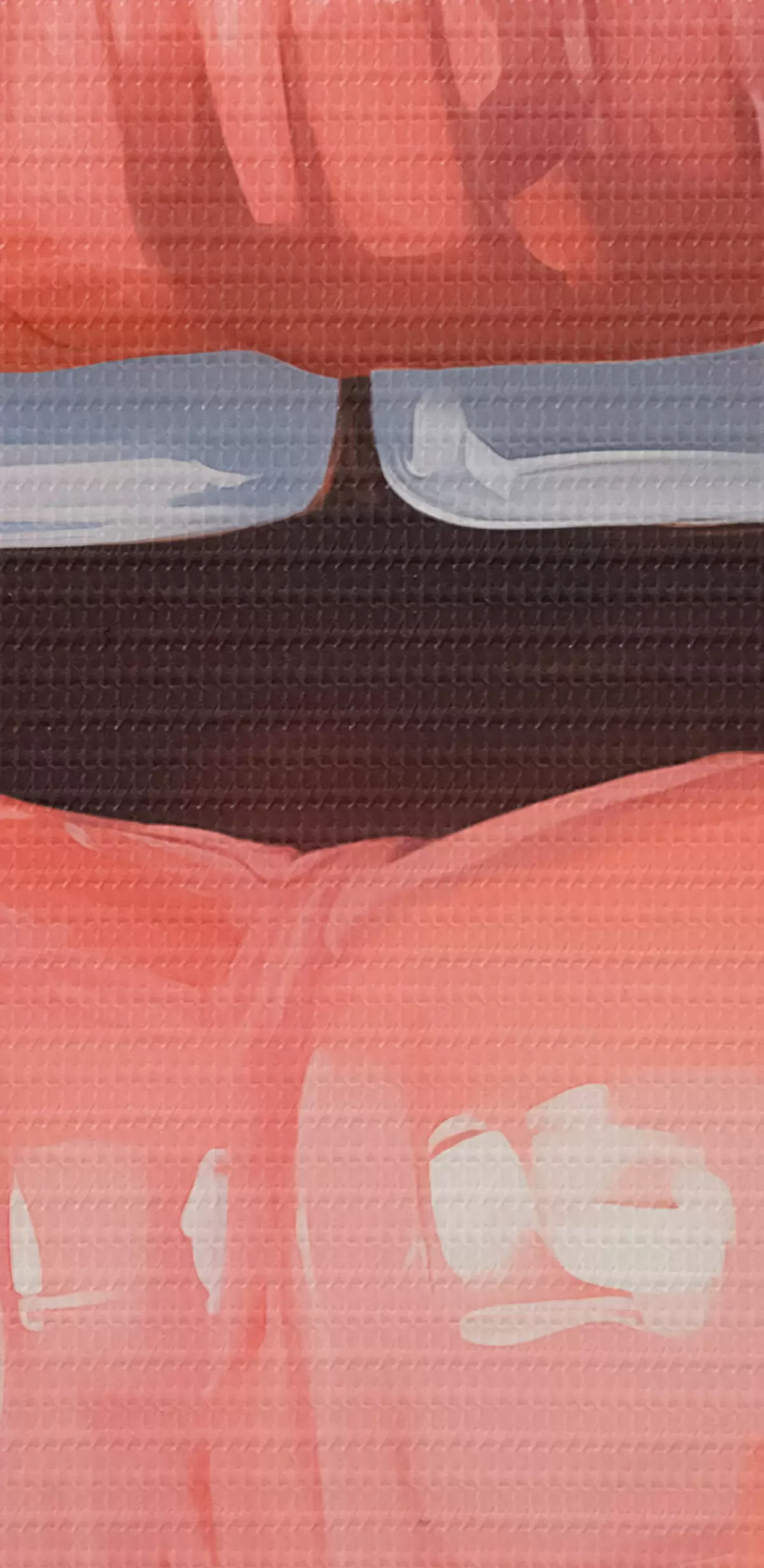 Selle lõuendi peenike niidipunus meenutab professionaalse kunstniku lõuendi pinda.