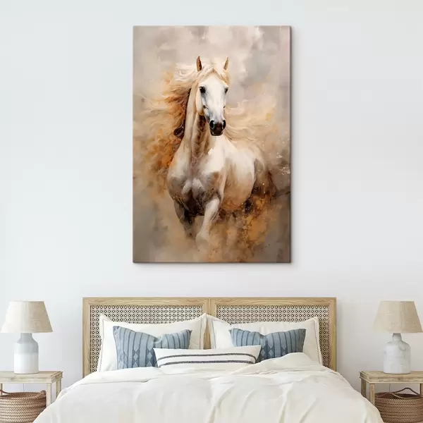 Maalid Maaliline portree valgest hobusest liikumises Nr s42932