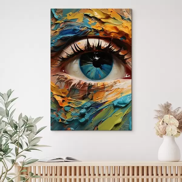 Maalid Abstraktne silmaportree elavatest värvidest, tekstuurse maalimise efektiga Nr s42938