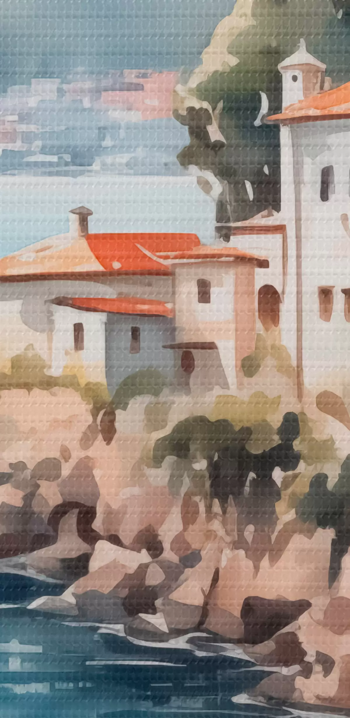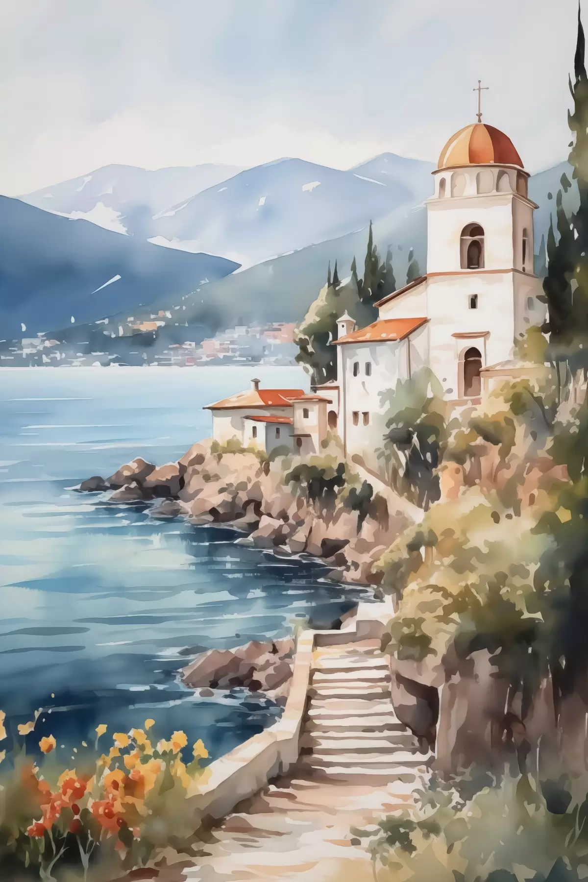 Maalid Kirik mere ääres, taustaks mäed Nr s42962