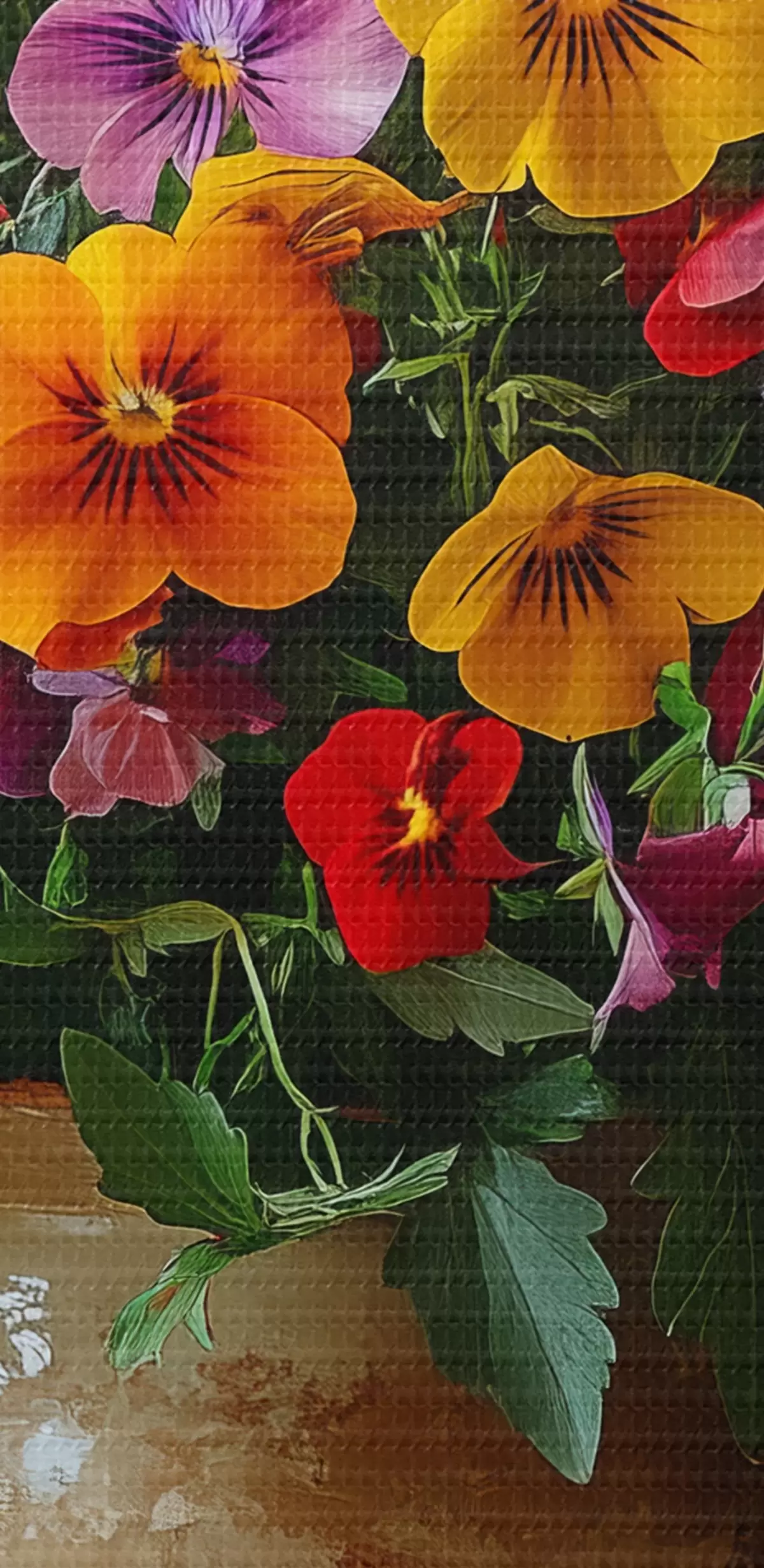Selle lõuendi peenike niidipunus meenutab professionaalse kunstniku lõuendi pinda.