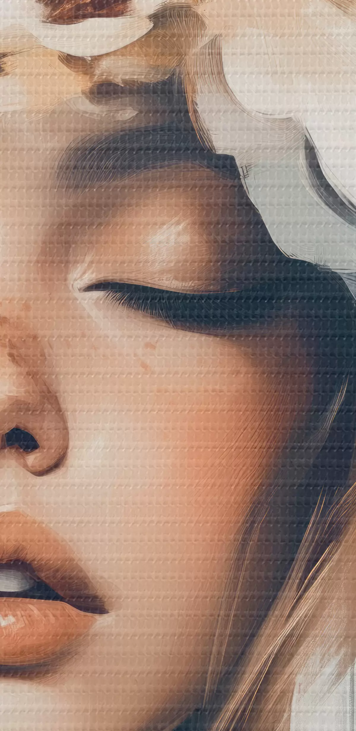 Selle lõuendi peenike niidipunus meenutab professionaalse kunstniku lõuendi pinda.