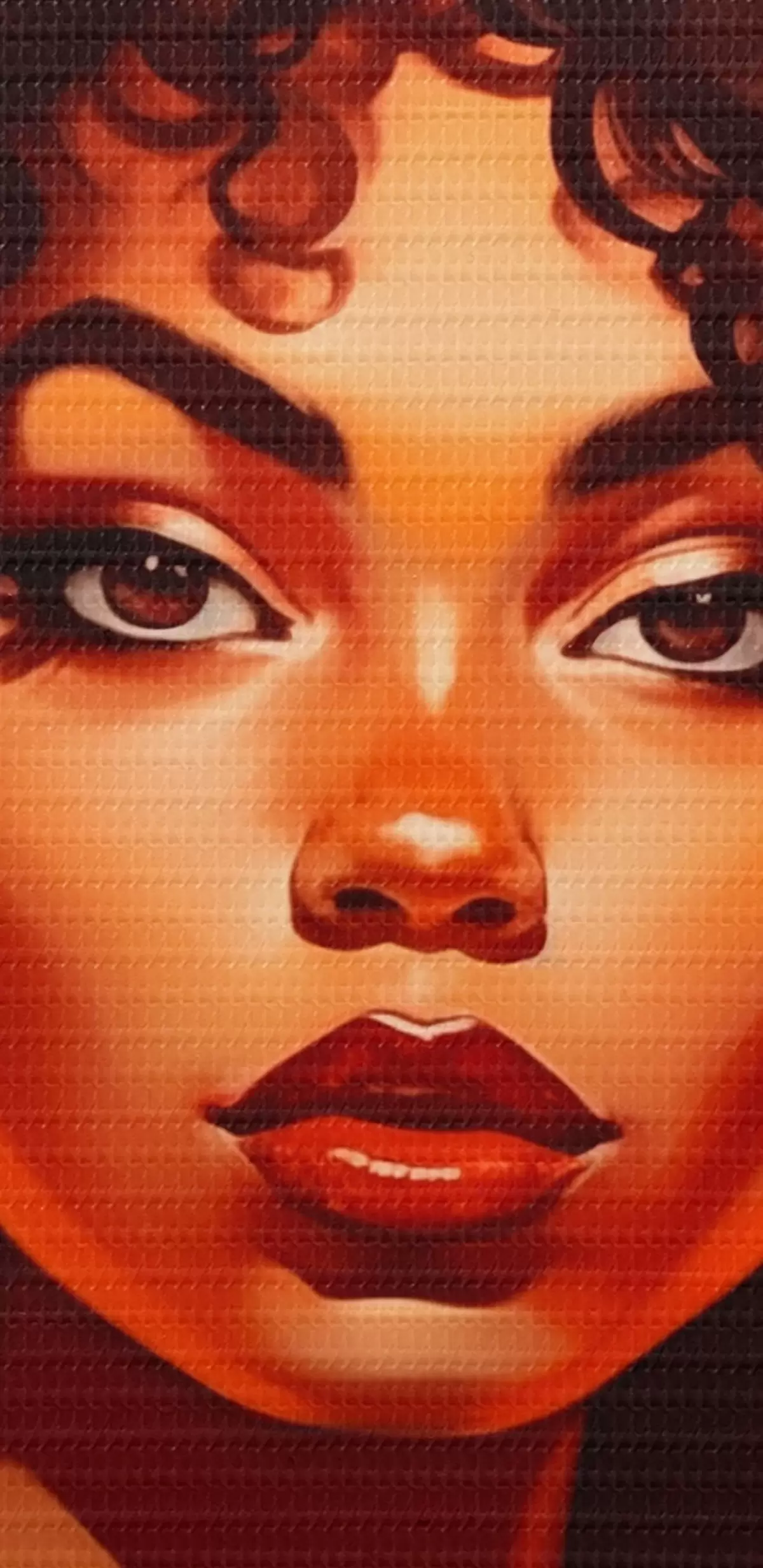 Selle lõuendi peenike niidipunus meenutab professionaalse kunstniku lõuendi pinda.