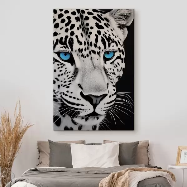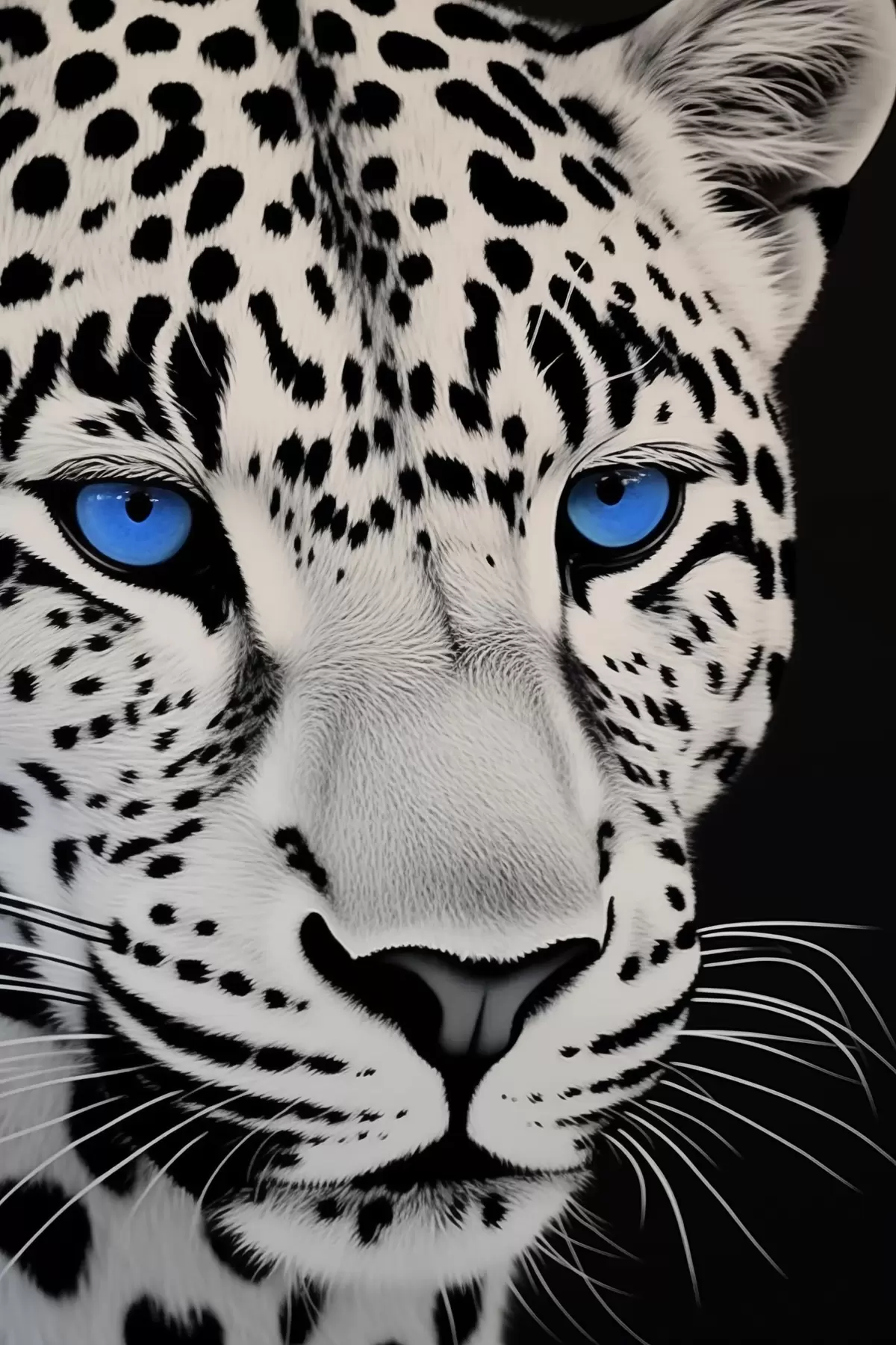 Maalid Siniste silmadega leopardi must-valge portree Nr s43008