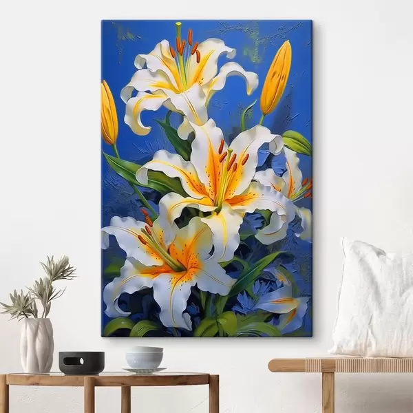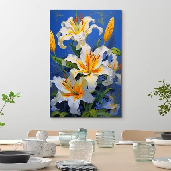 Maalid Valged liiliad sinisel taustal Nr s43018