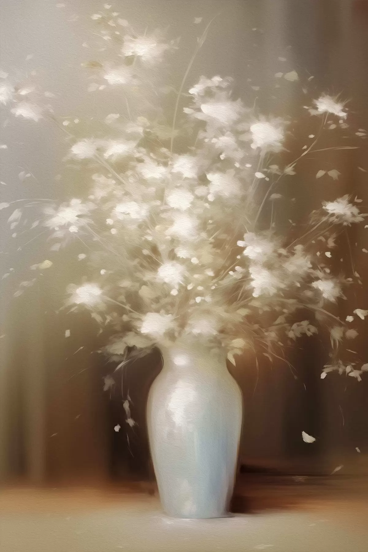 Maalid Vasi valgete lilledega taimedega Nr s43039