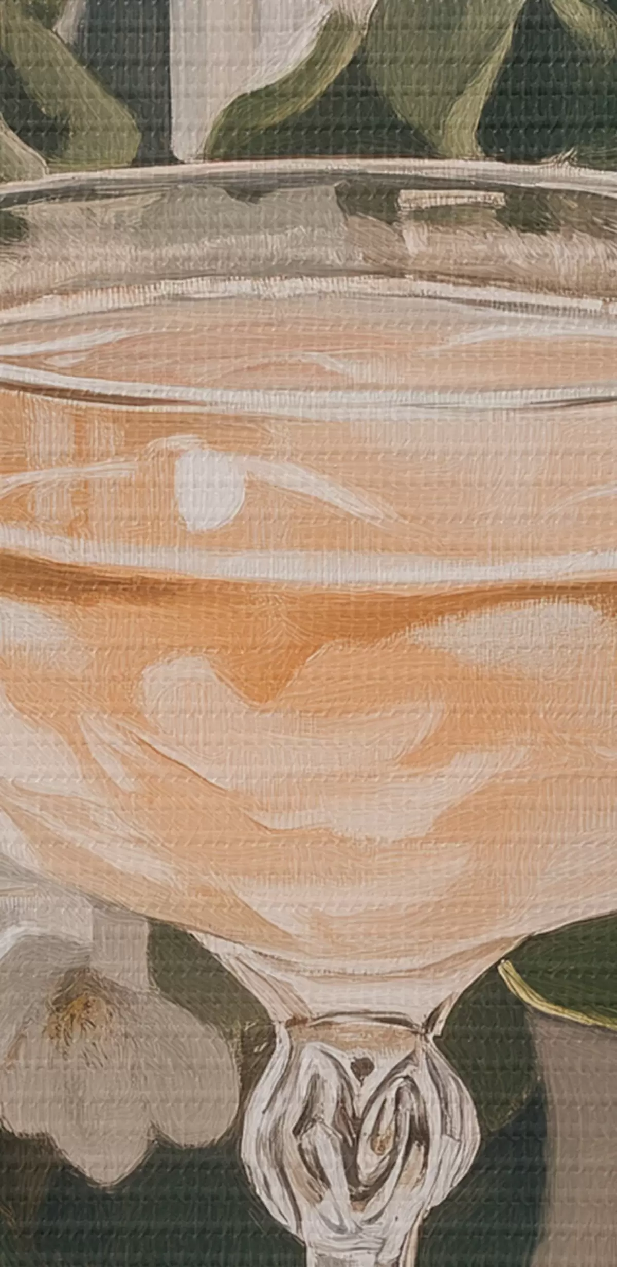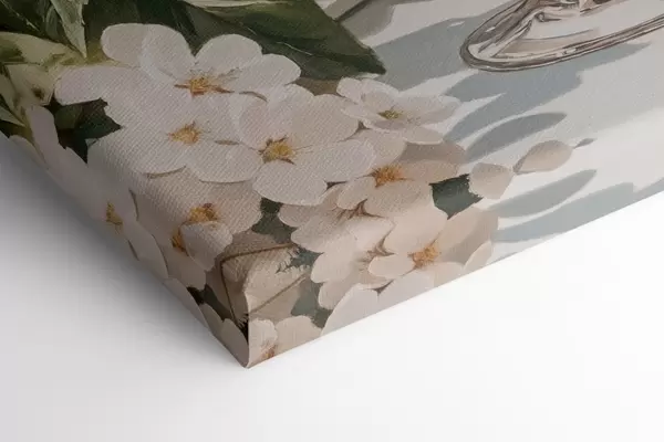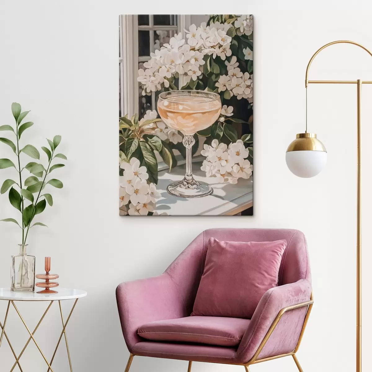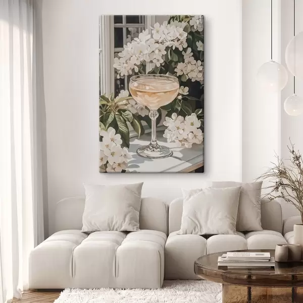 Maalid Klaas šampanja, vintage, akvarellstiilis, valged lilled Nr s43051