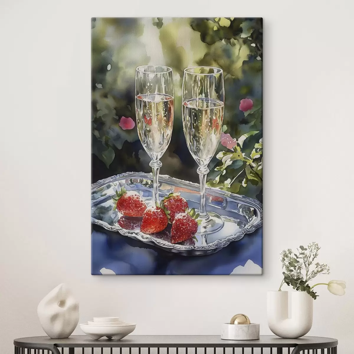 Maalid Pidulikud ja vahutavad šampanjaklaasid koos maasikatega kandikul Nr s43057