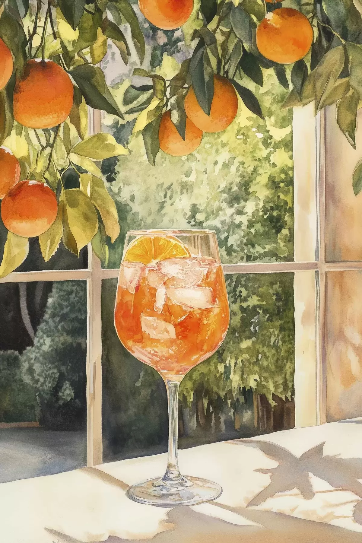 Maalid Maitsev kokteil apelsinidega, rustikaalne stiil, akvarell, loodus Nr s43060