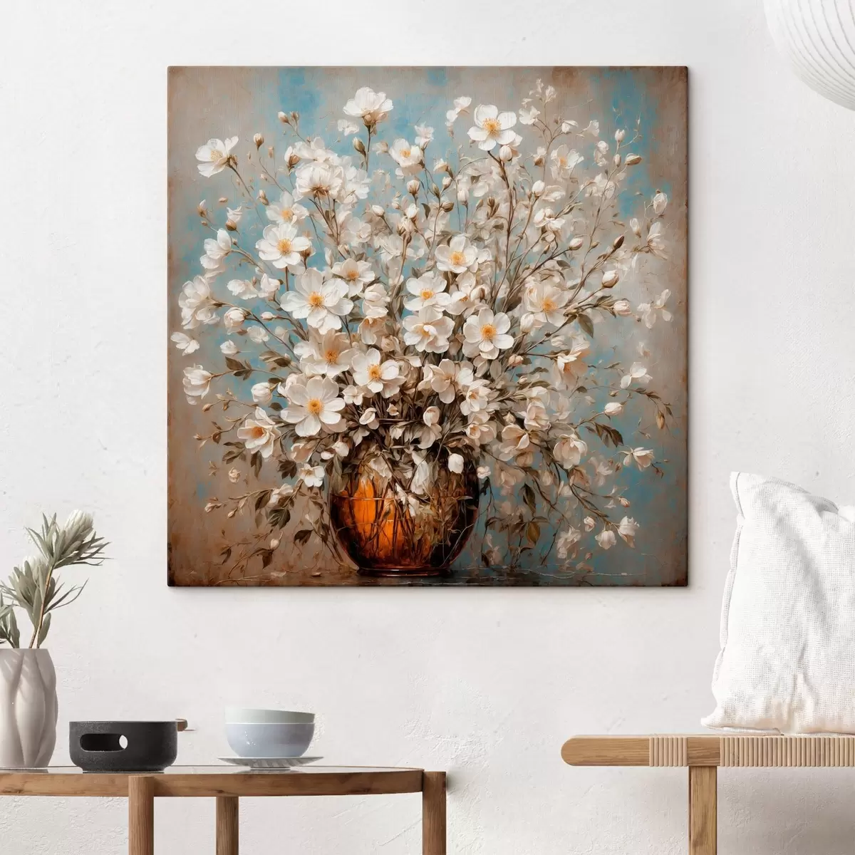 Maalid Valged lilled vaasis akrüülfoonil Nr s43107