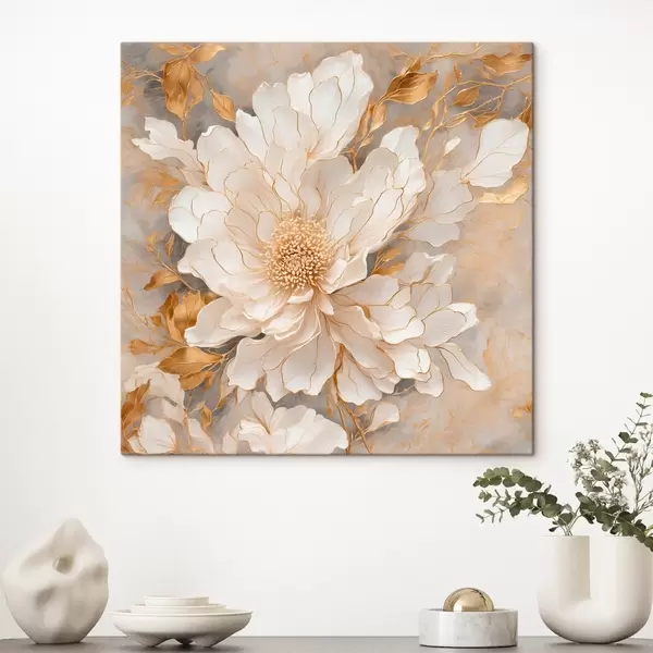 Maalid Valge lill koos lehtedega akrüülmaali stiilis Nr s43115