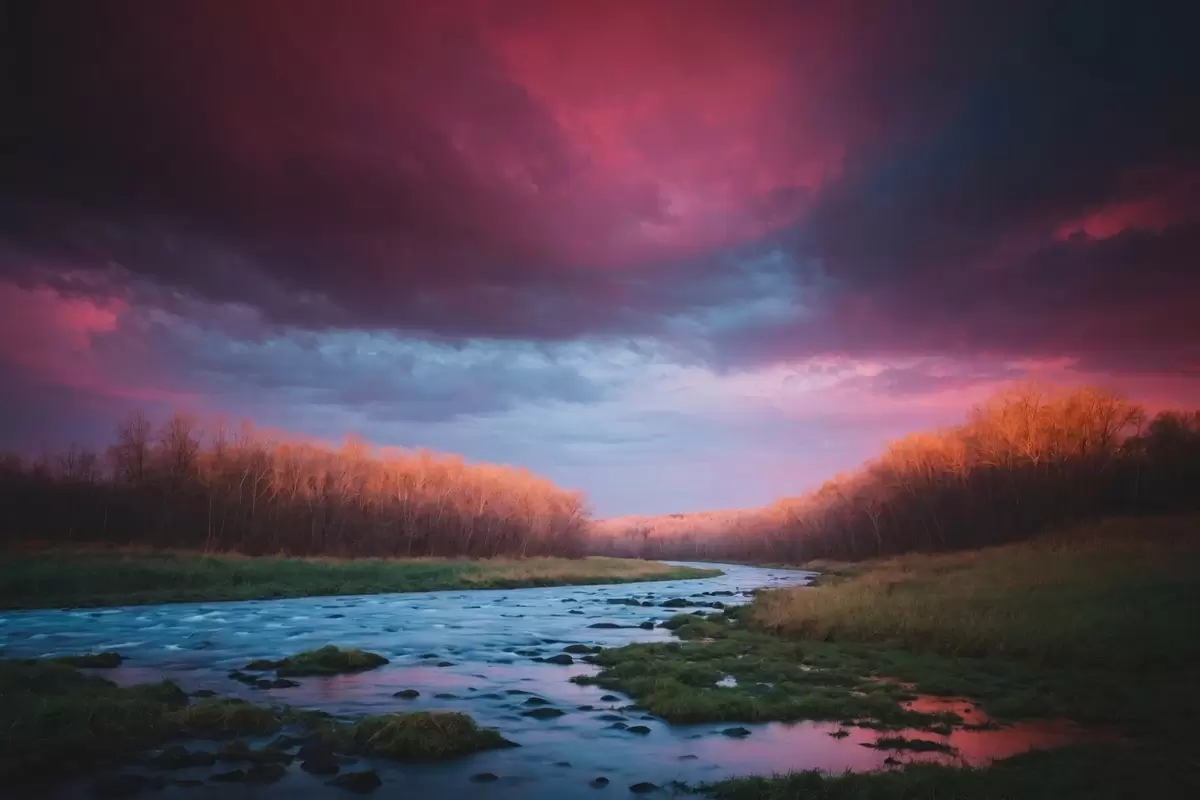 Maalid Oja põllul lilla taeva taustal Nr s43120