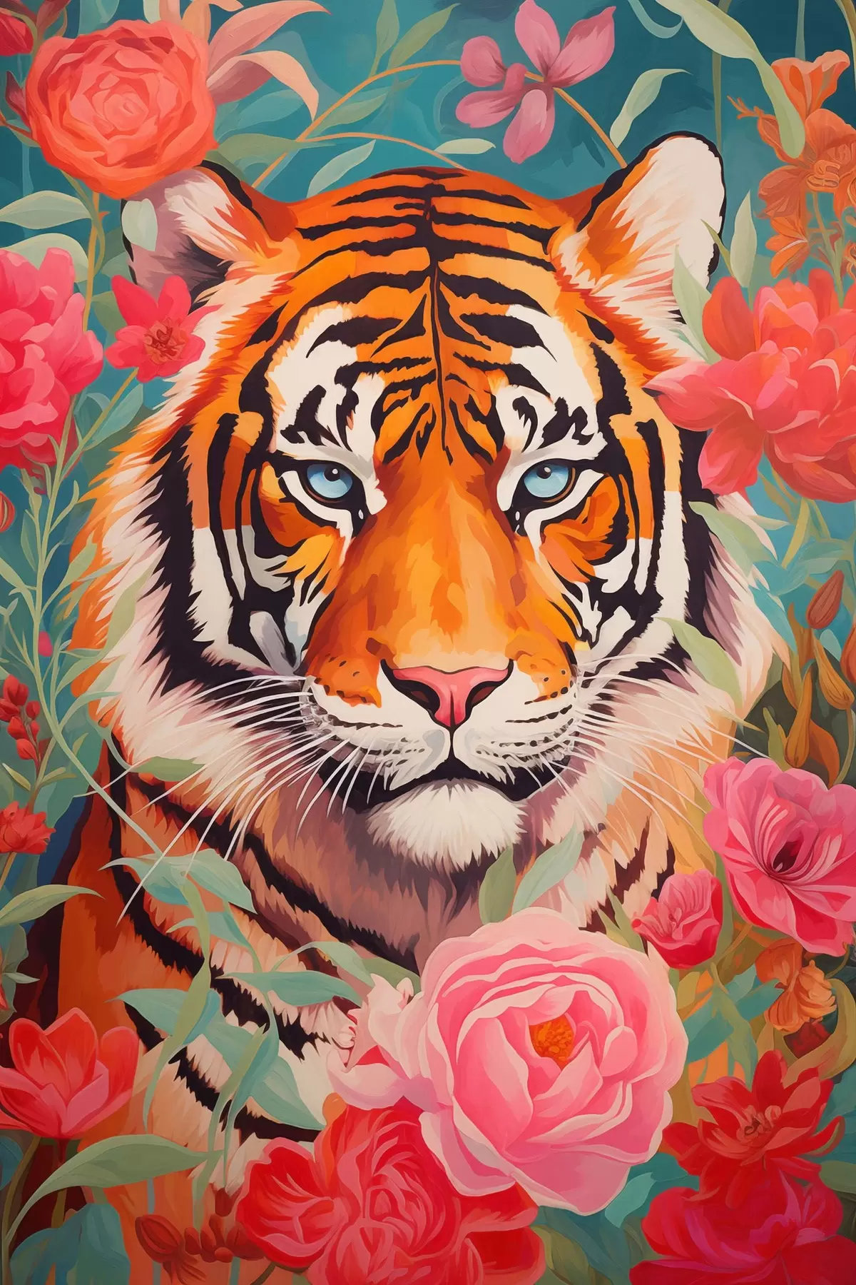 Maalid Tiigri lummav pilk keset elavat roosi Nr s43132
