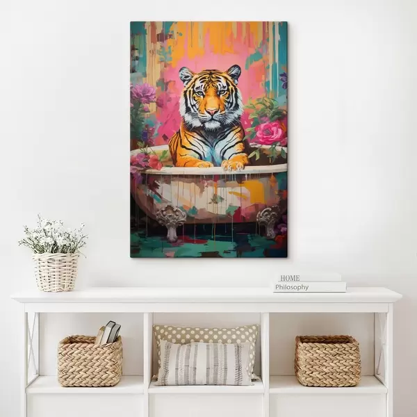 Maalid Abstraktne tiiger vannis, ümbritsetud elavatest lilledest Nr s43134