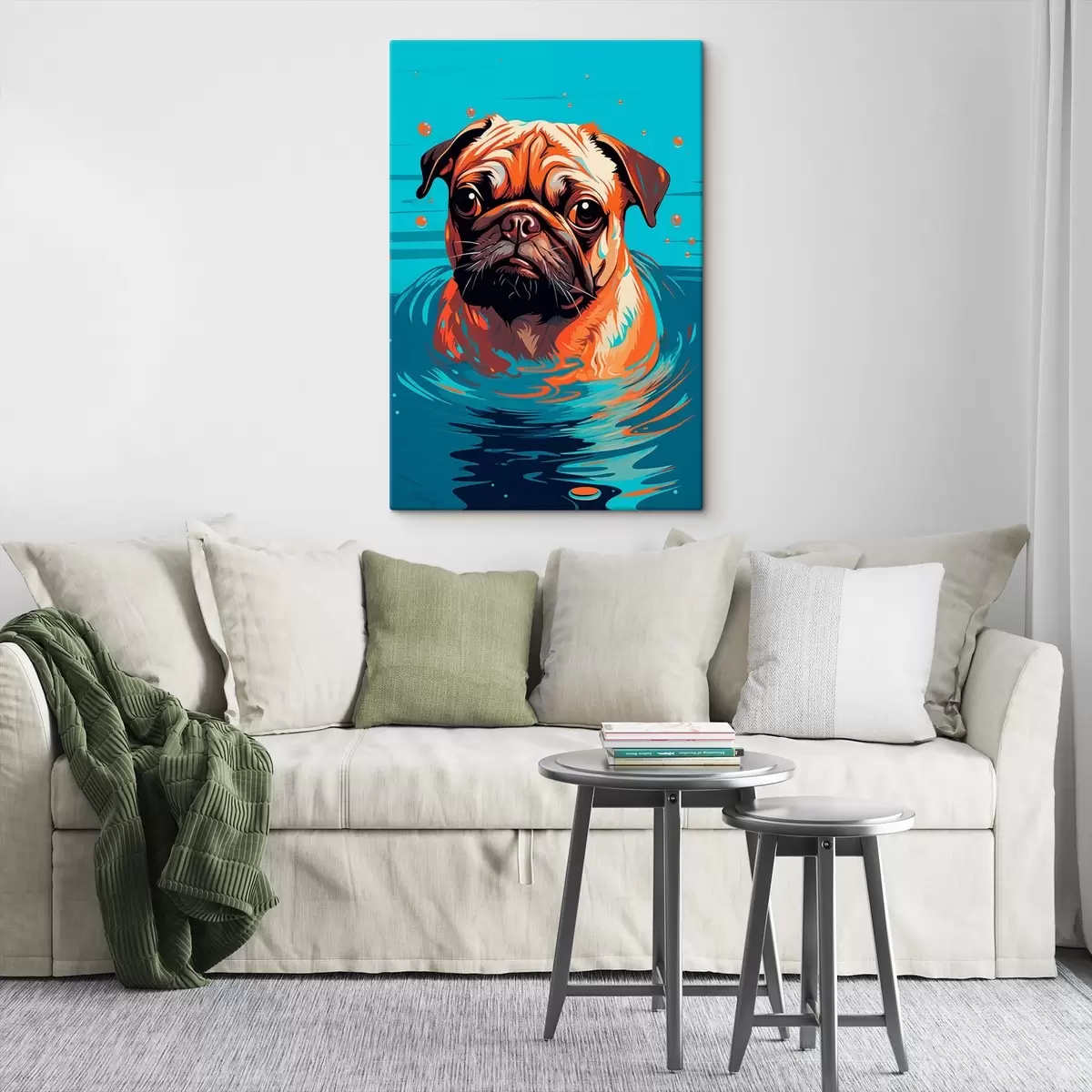 Maalid Stiliseeritud portree mopsist vees, millel on väljendusrikas pilk Nr s43136
