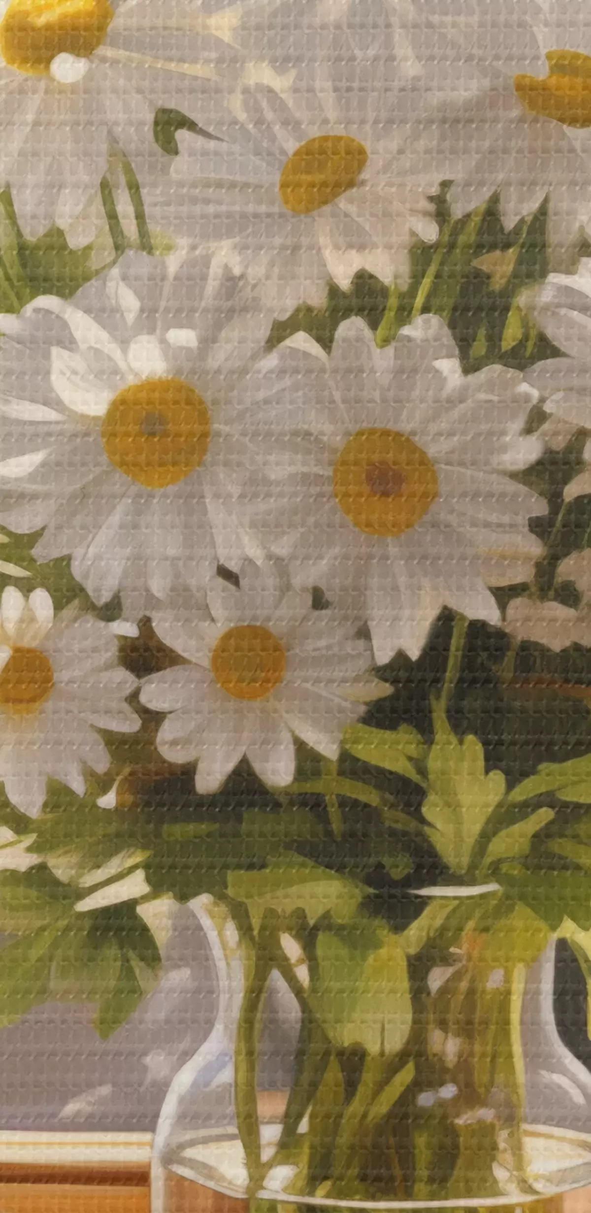 Selle lõuendi peenike niidipunus meenutab professionaalse kunstniku lõuendi pinda.