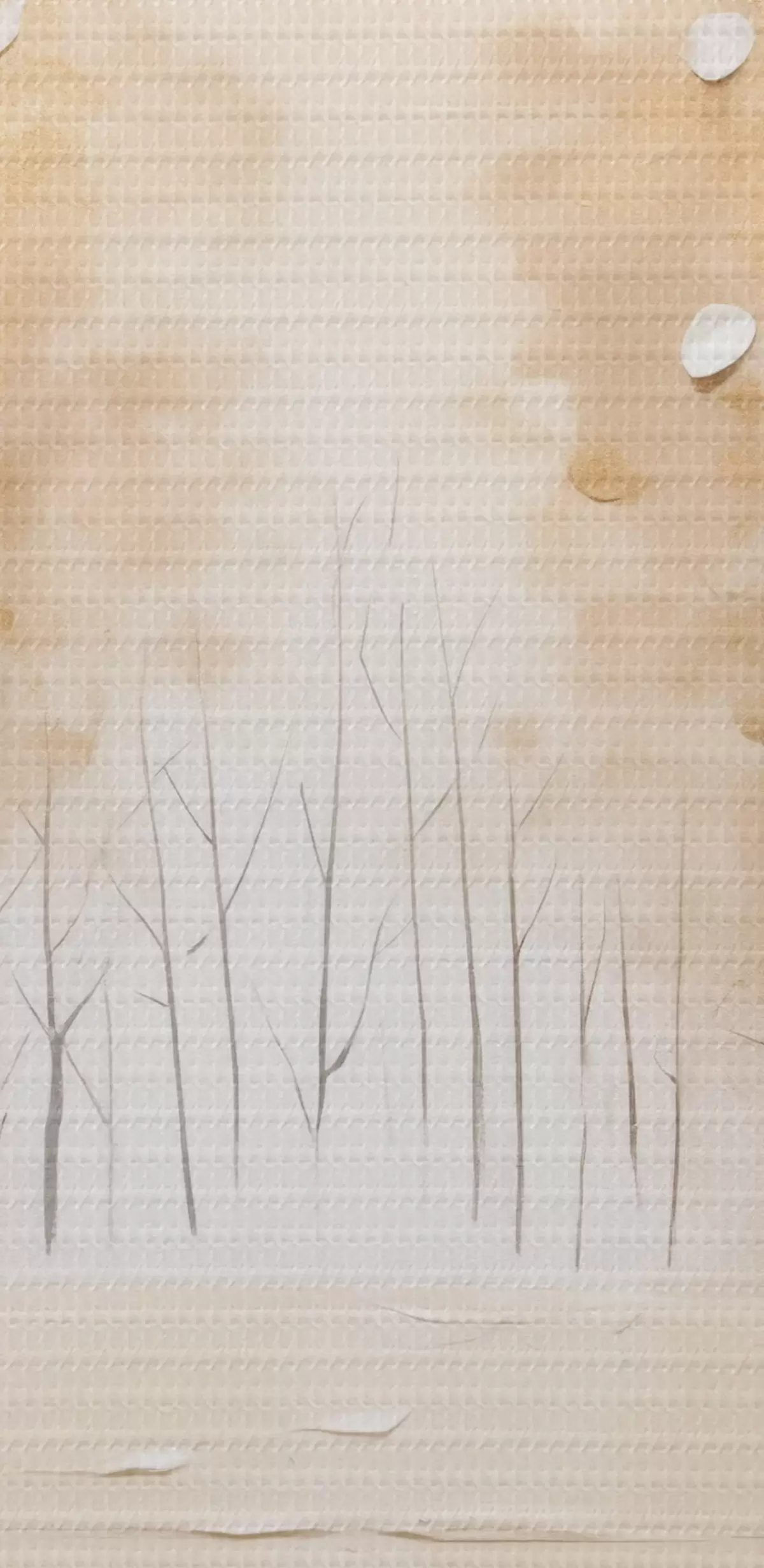 Selle lõuendi peenike niidipunus meenutab professionaalse kunstniku lõuendi pinda.