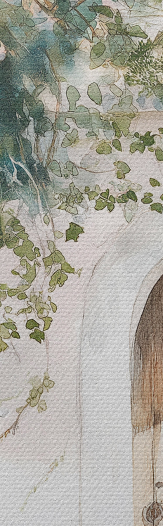 Maalid Kaunis valge maja koos õitsva puuga, Vahemere, akvarellistiilis Nr s43179