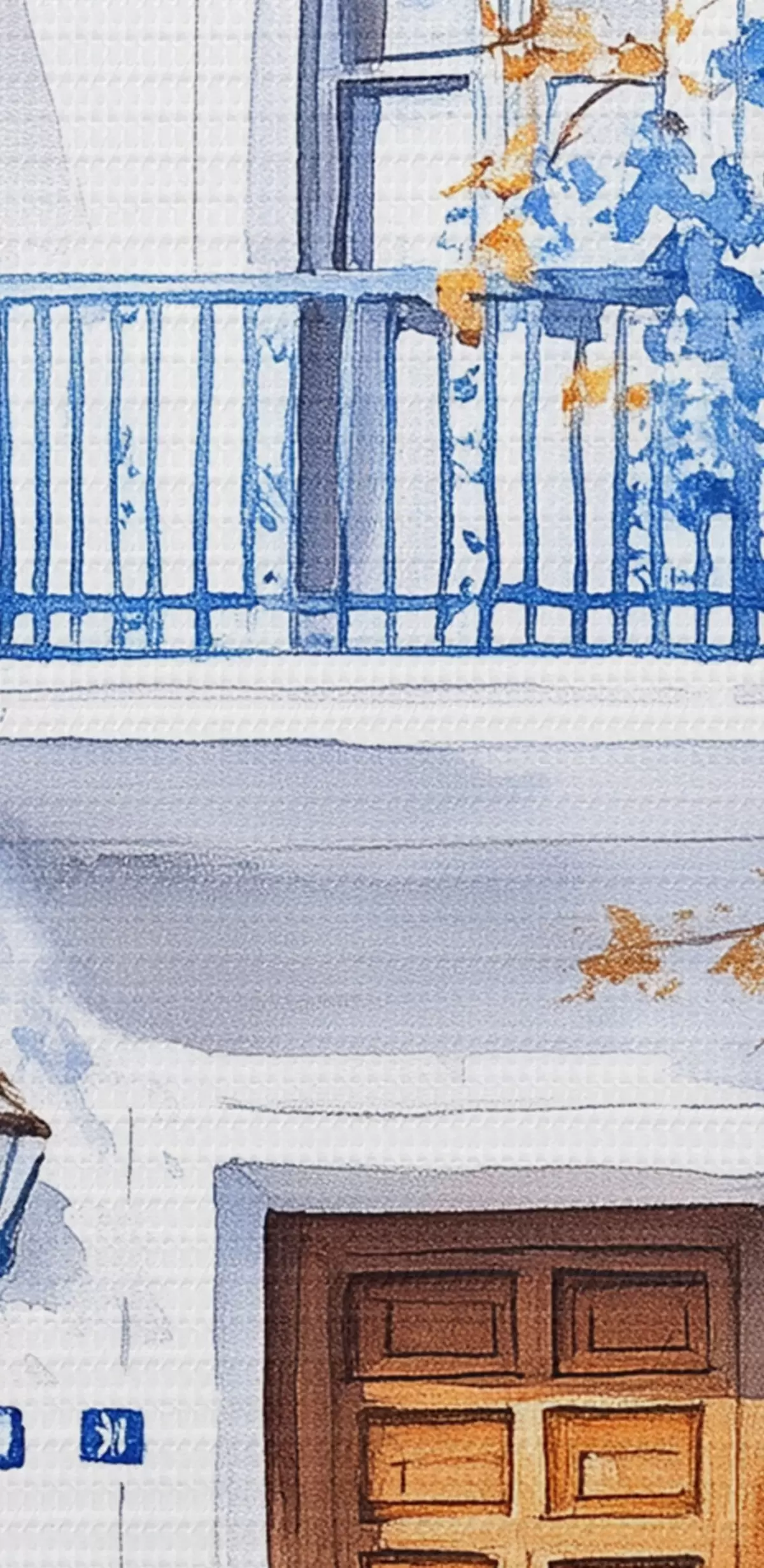 Maalid Siniste lilledega õitsev puu, valge maja, Kreeka, akvarellstiilis Nr s43183