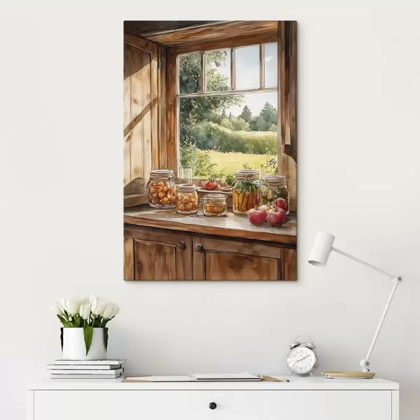 Maalid Külaesteetika, puitmaja, suvine loodus, köögiviljad, akvarellstiil Nr s43185
