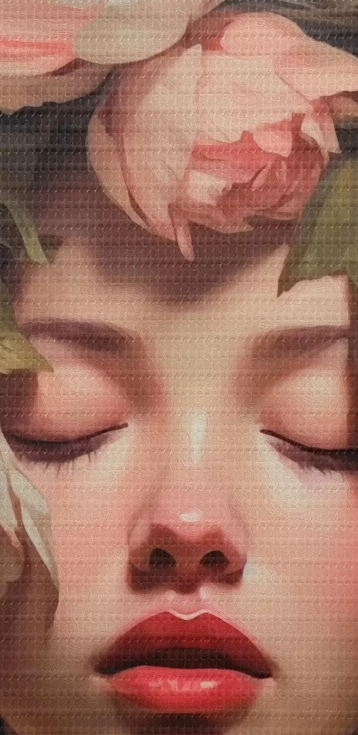 Selle lõuendi peenike niidipunus meenutab professionaalse kunstniku lõuendi pinda.