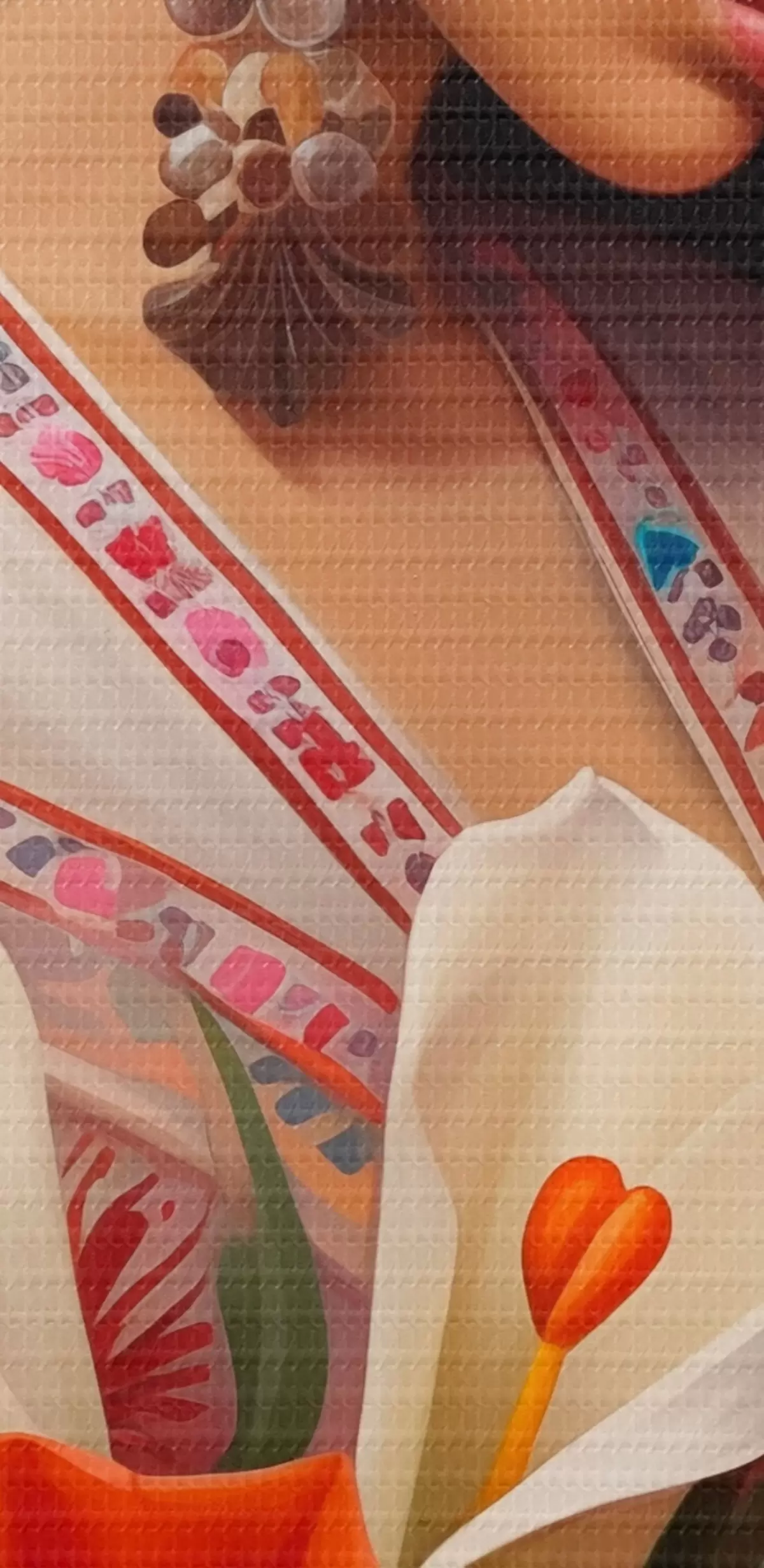Selle lõuendi peenike niidipunus meenutab professionaalse kunstniku lõuendi pinda.