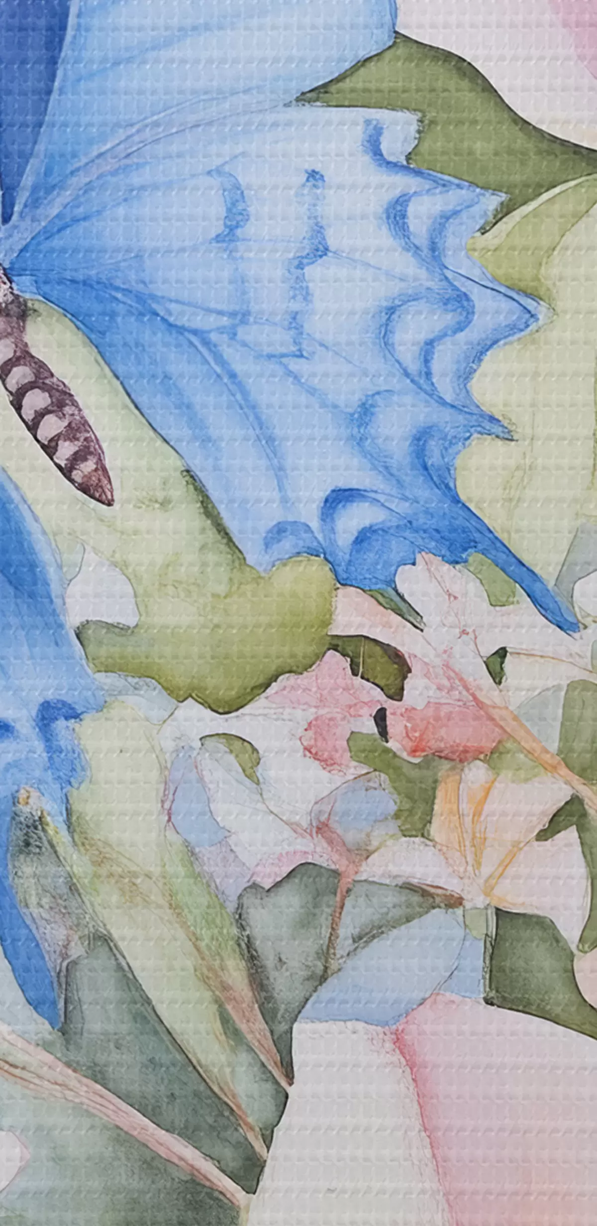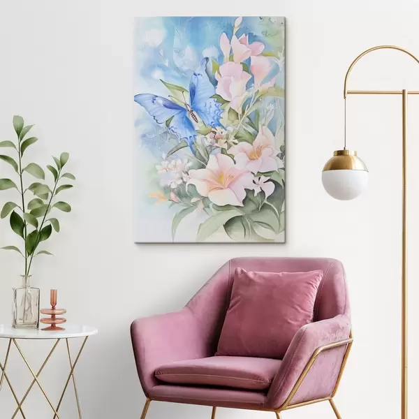 Maalid Sinine liblikas ja roosad lilled Nr s43296
