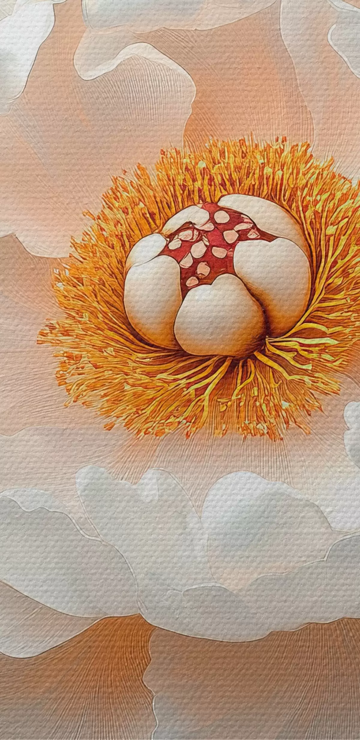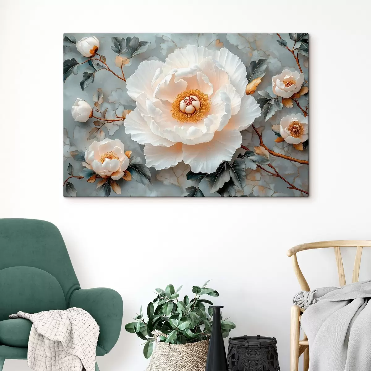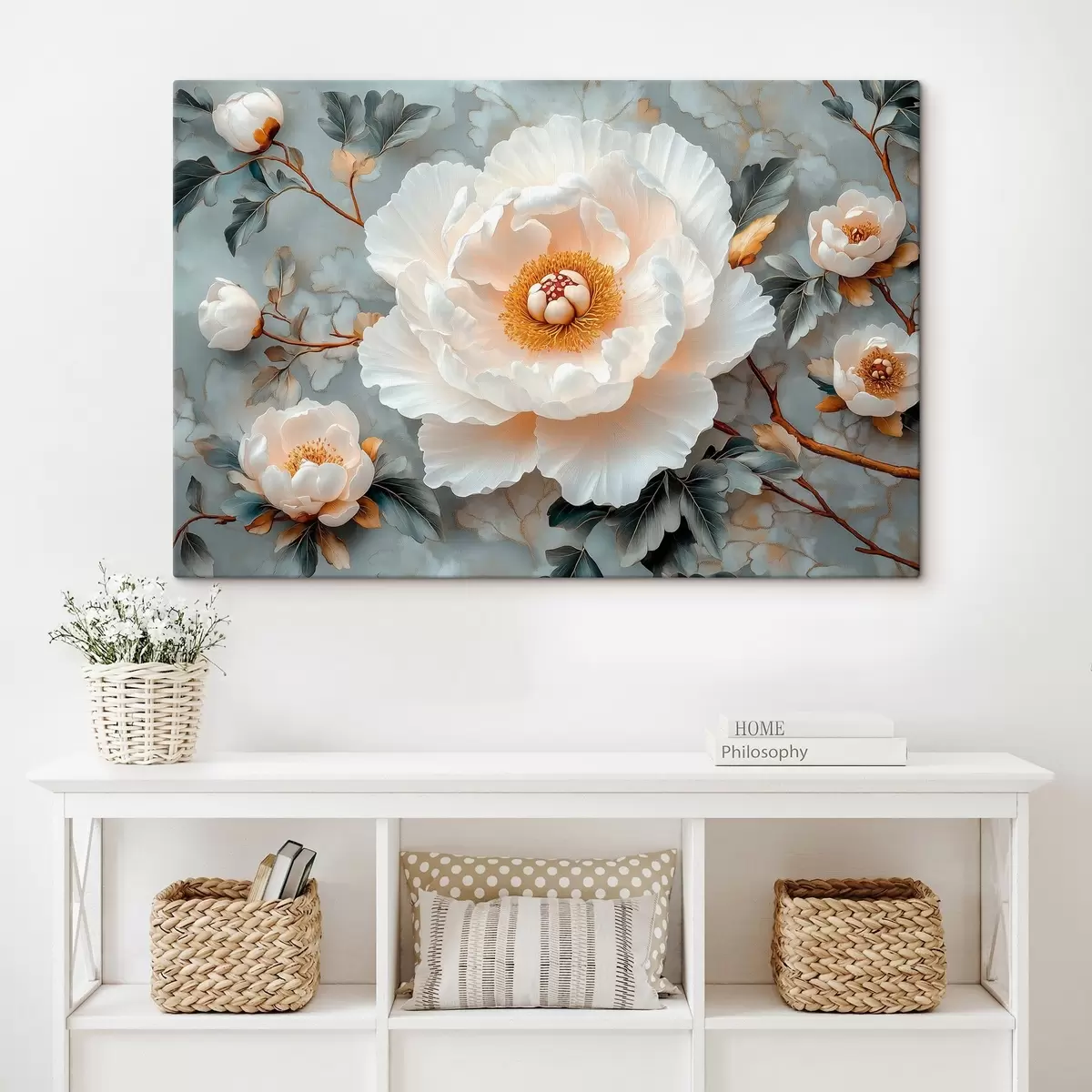 Maalid Suurepärane pioon lehtede ja väikeste pojengide taustal Nr s43315