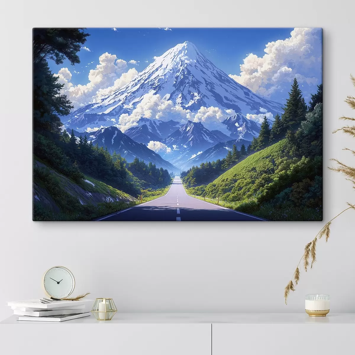 Maalid Tee mägedesse, mille ümber on pilved ja metsad Nr s43317