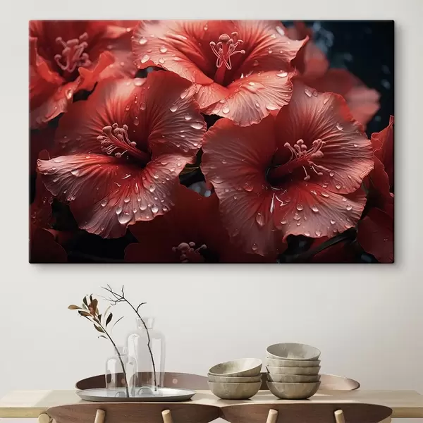 Maalid Punased lilled, mille kroonlehtedel on kaste Nr s43319