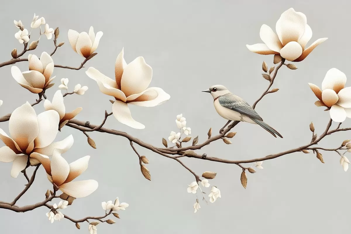 Maalid Linnuke harul magnooliatega pehmete pastelsete värvidega Nr s43320