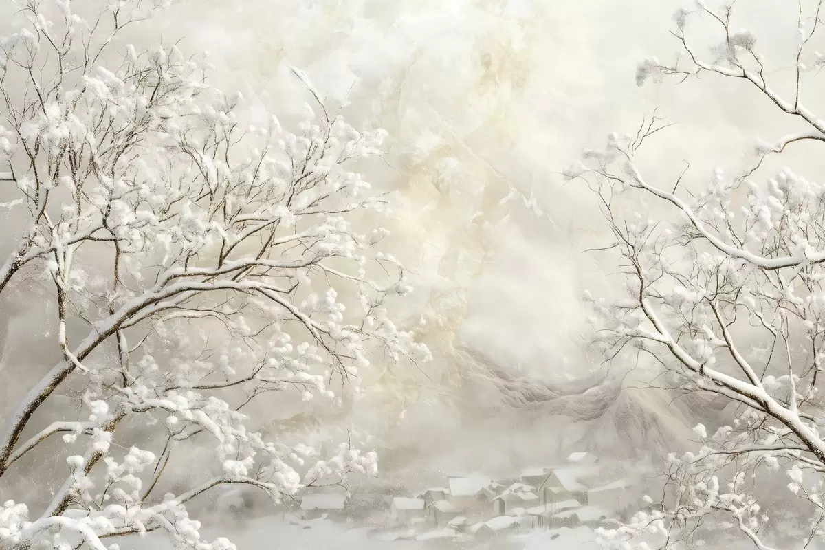 Maalid Talvised oksad koos lumega talveküla taustal Nr s43321