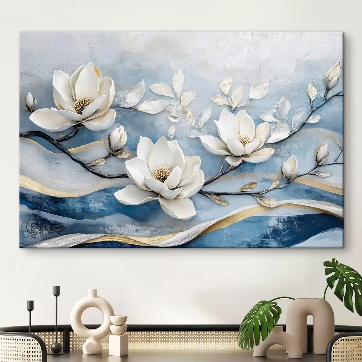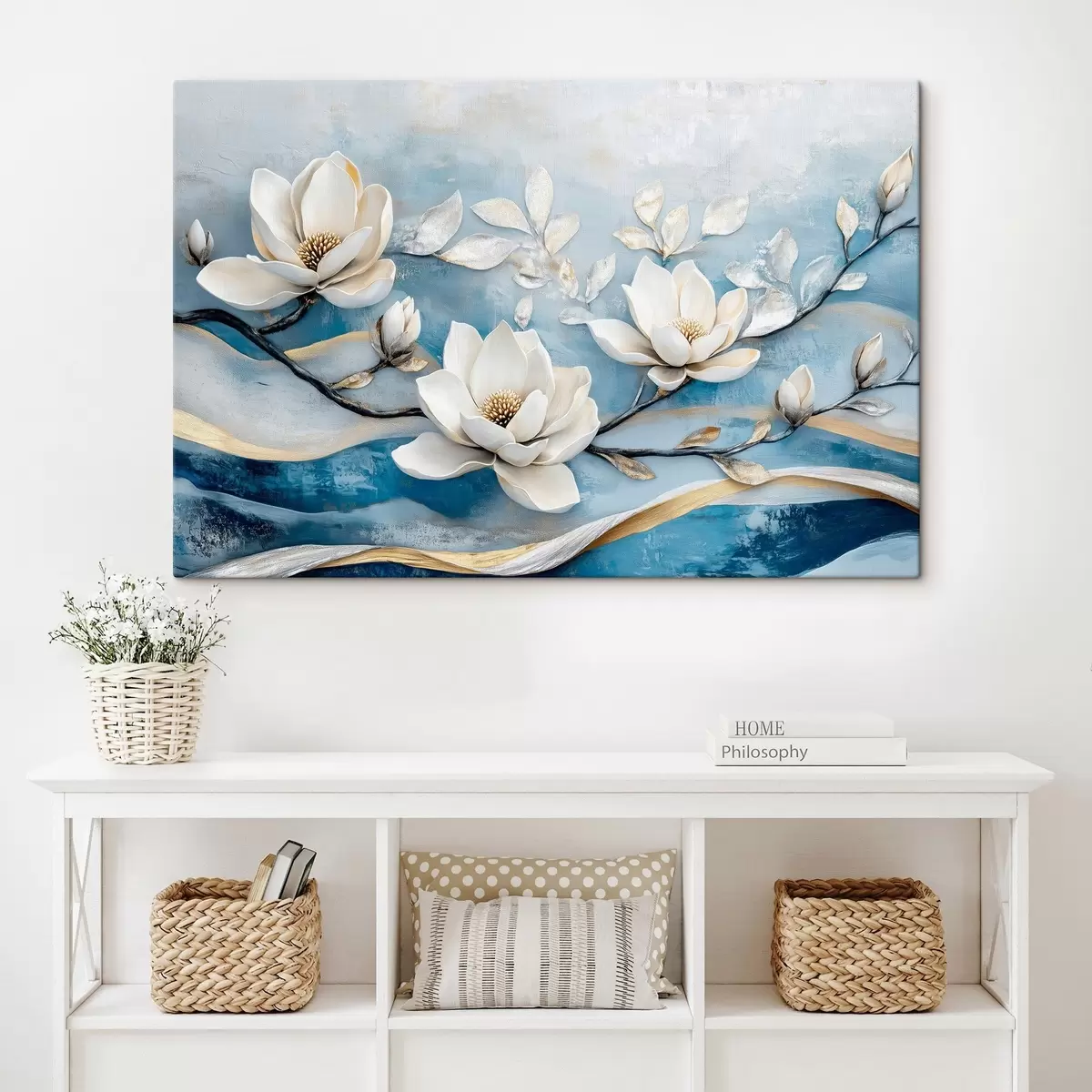 Maalid Magnoolia oksa abstraktsel sinikollasel taustal Nr s43323
