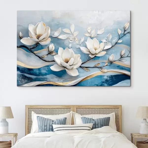 Pilt Magnoolia oksa abstraktsel sinikollasel taustal s43323