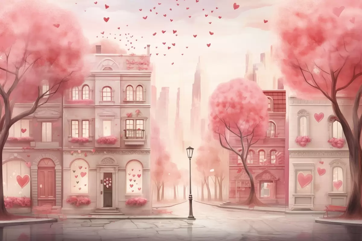 Maalid Romantiline roosa tänav südamega Nr s43324