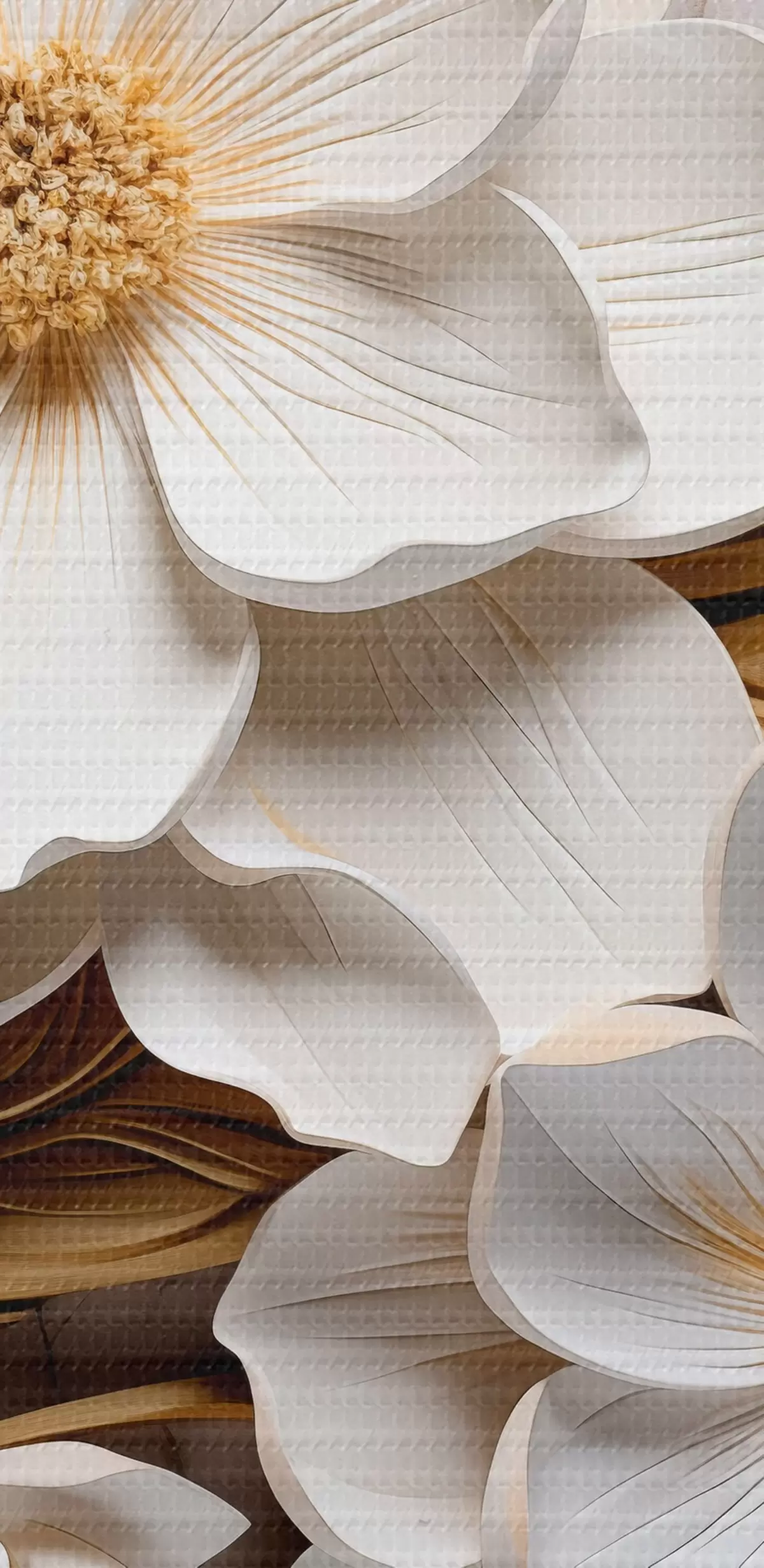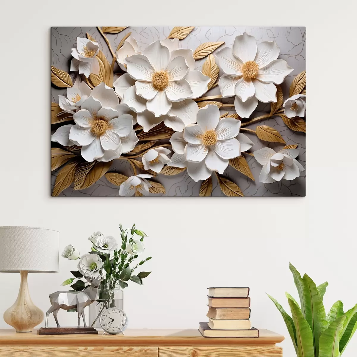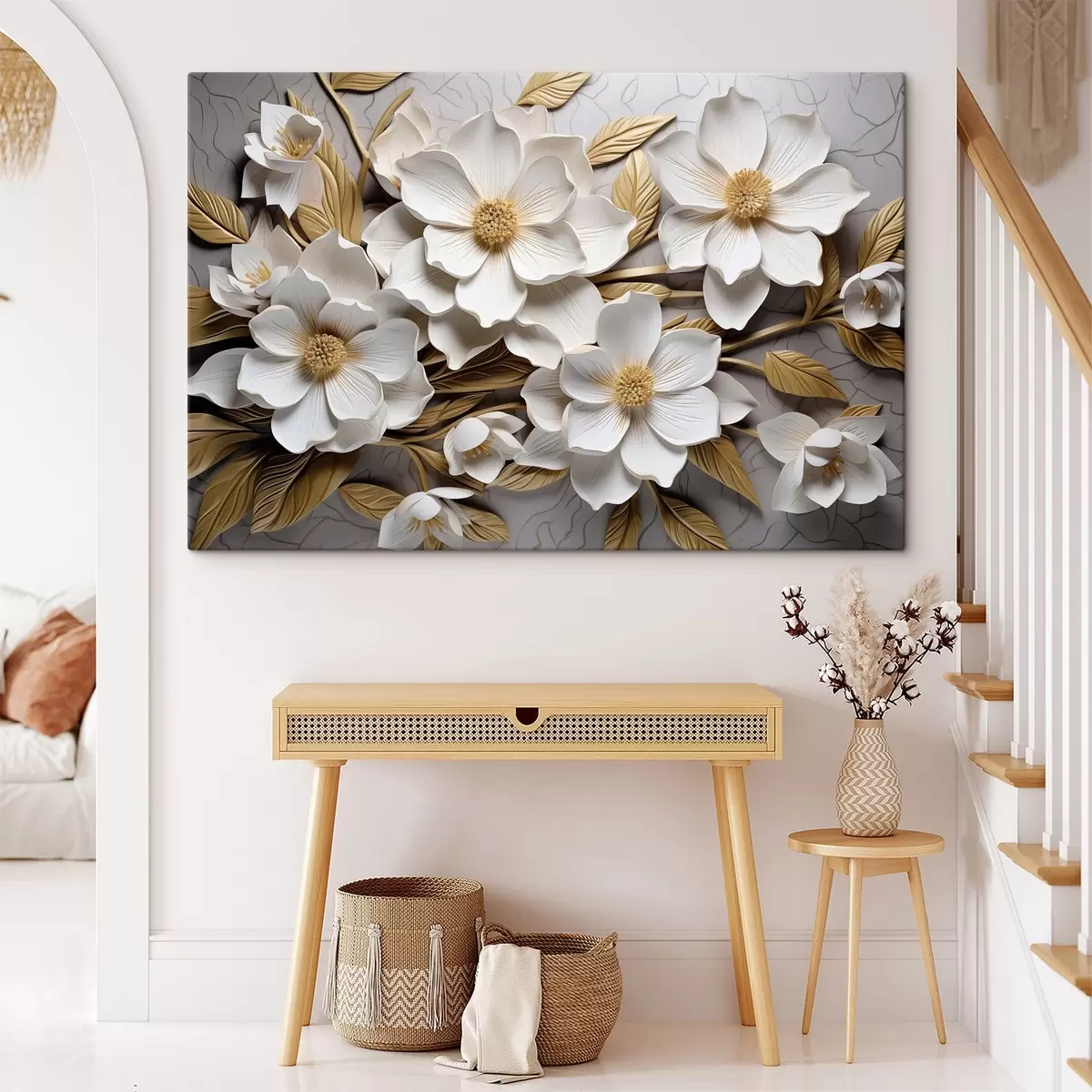 Maalid Valged lilled reljeefse fresko stiilis, kollaste lehtede ja õisikutega Nr s43330